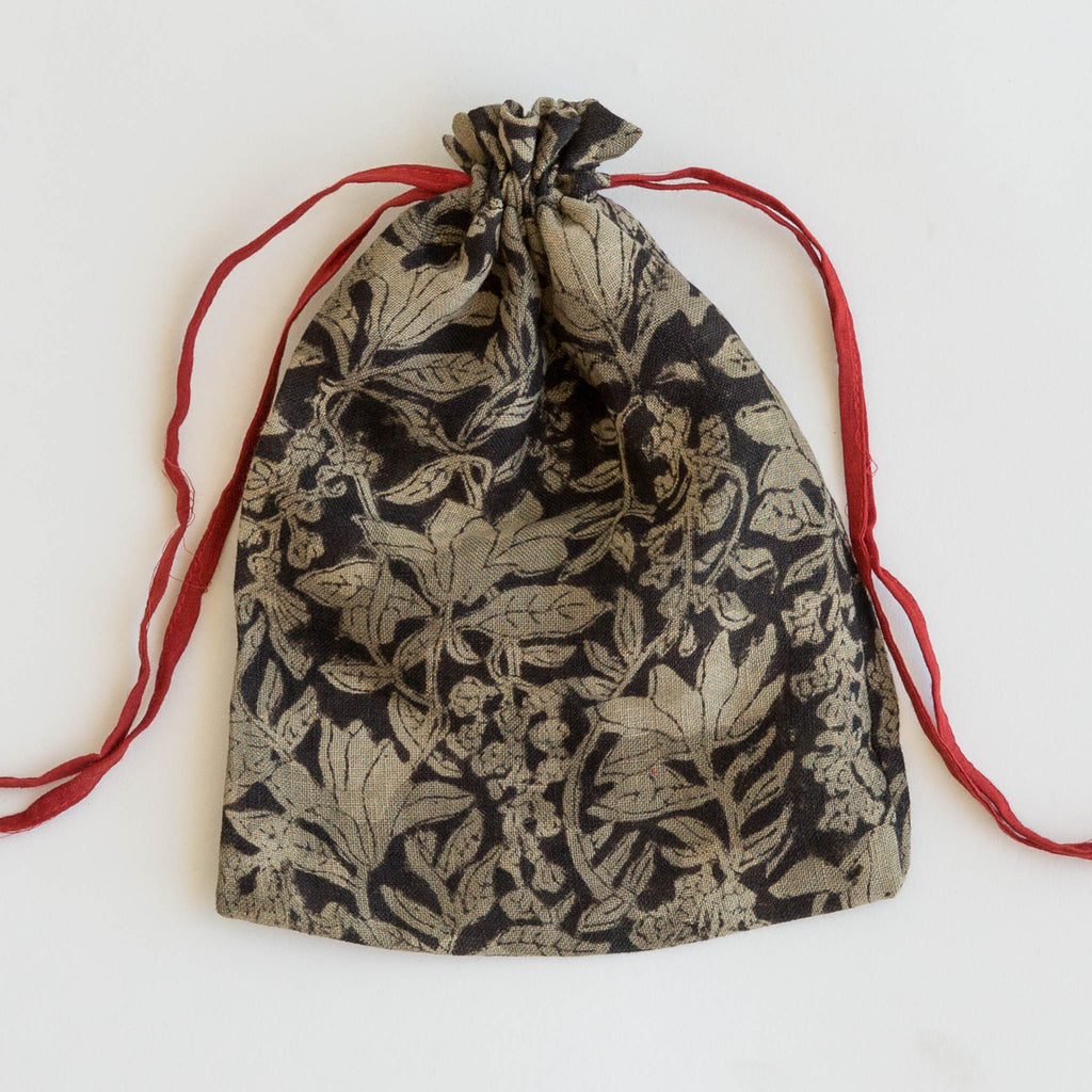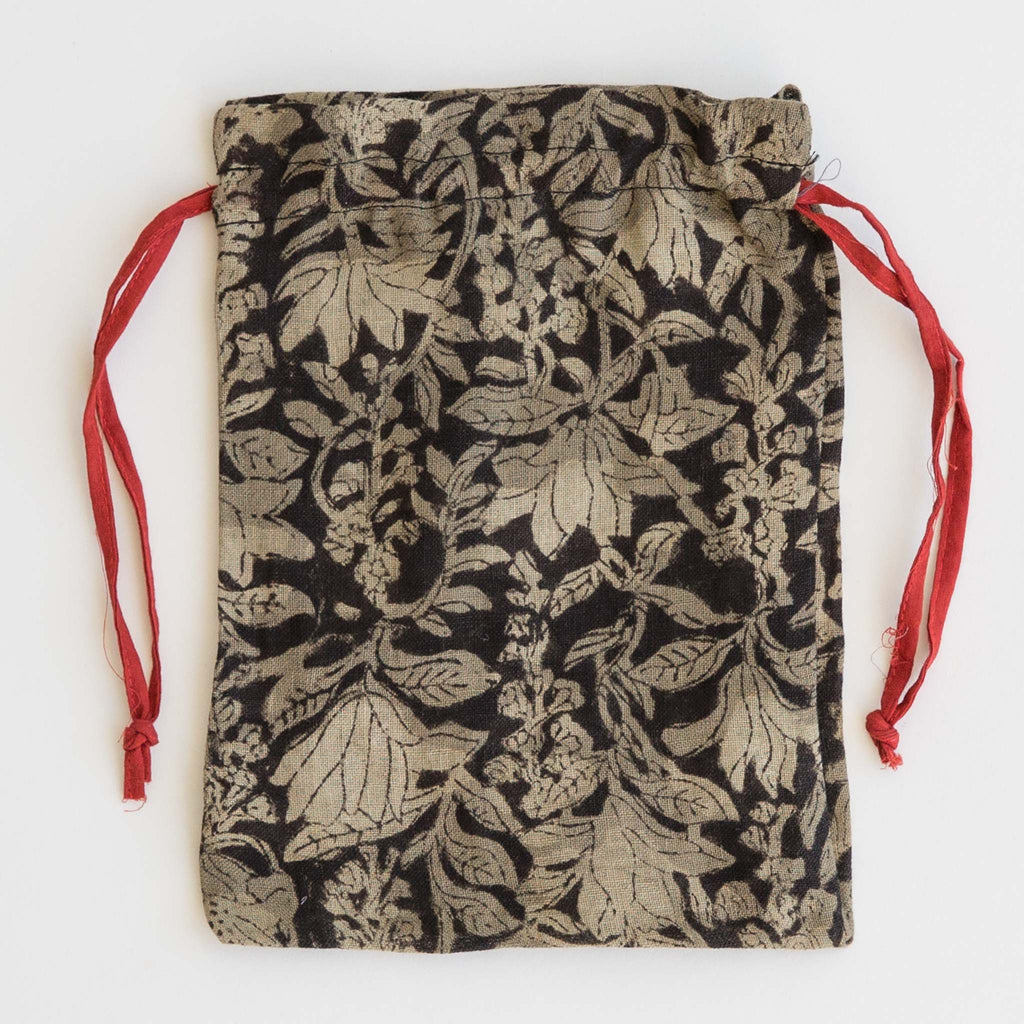 These naturally dyed drawstring bags are made with a variety of Maiwa's beautiful fabrics. They are great for carrying your essentials and perfect for gift giving.