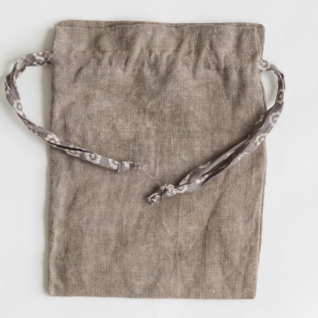 These naturally dyed drawstring bags are made with a variety of Maiwa's beautiful fabrics. They are great for carrying your essentials and perfect for gift giving.