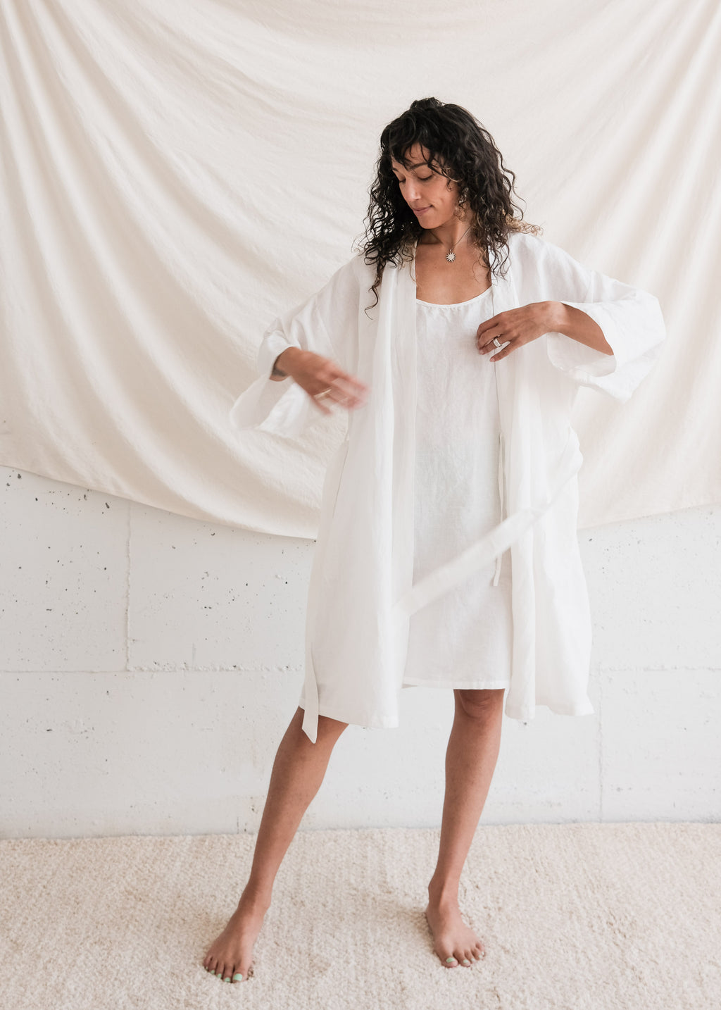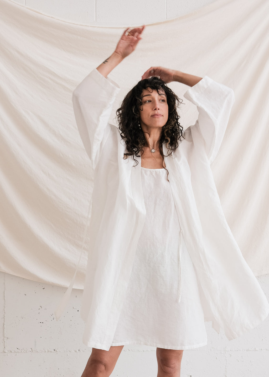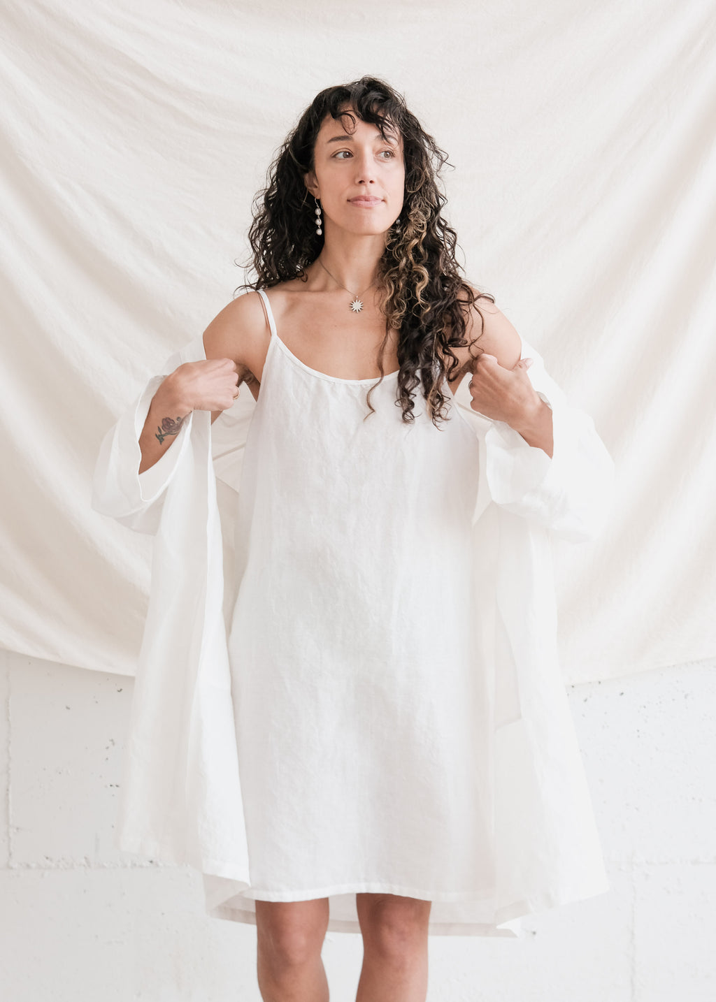 Suti Dress - Handwoven Linen & Cotton - Cloud White
