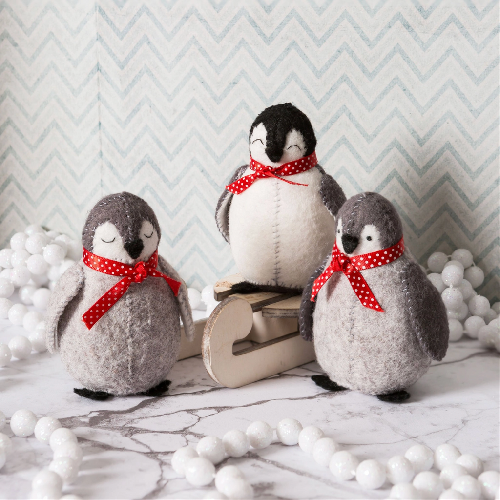 Everything needed to make three adorable felt Baby Penguins is in the box (except scissors!).
