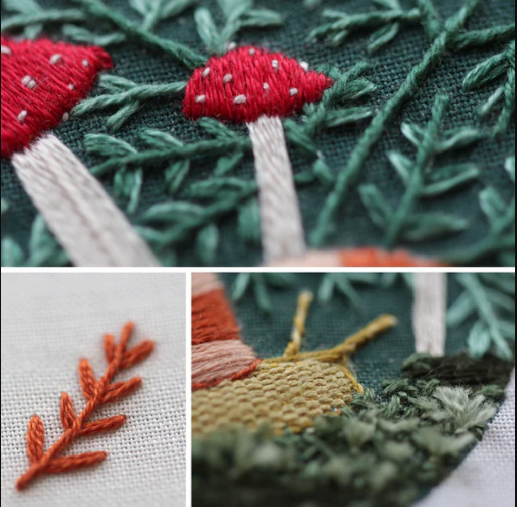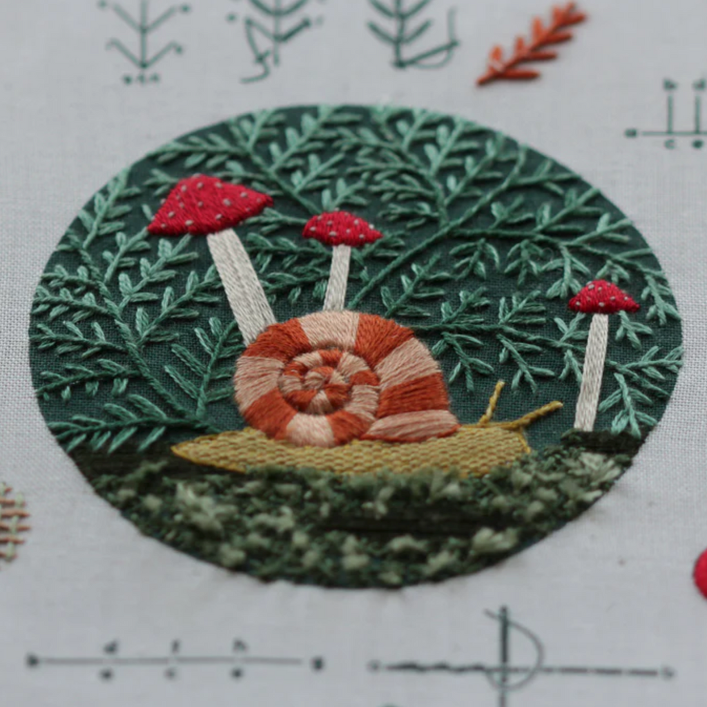 The Forest Floor Embroidery Stitch Sampler is a great introduction to stitches used in Kiriki Press and other embroidery patterns.