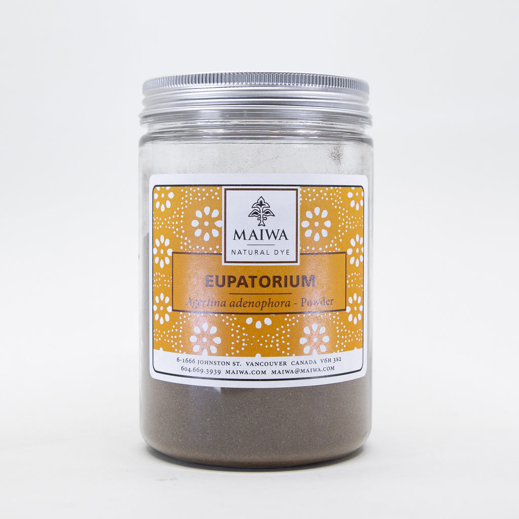 Dyeing: For ground leaves use 20-30% WOF for a medium depth of shade. For the extract use 10% WOF. Eupatorium yields warm yellows to ochres. The addition of an iron mordant gives lovely moss greens.
