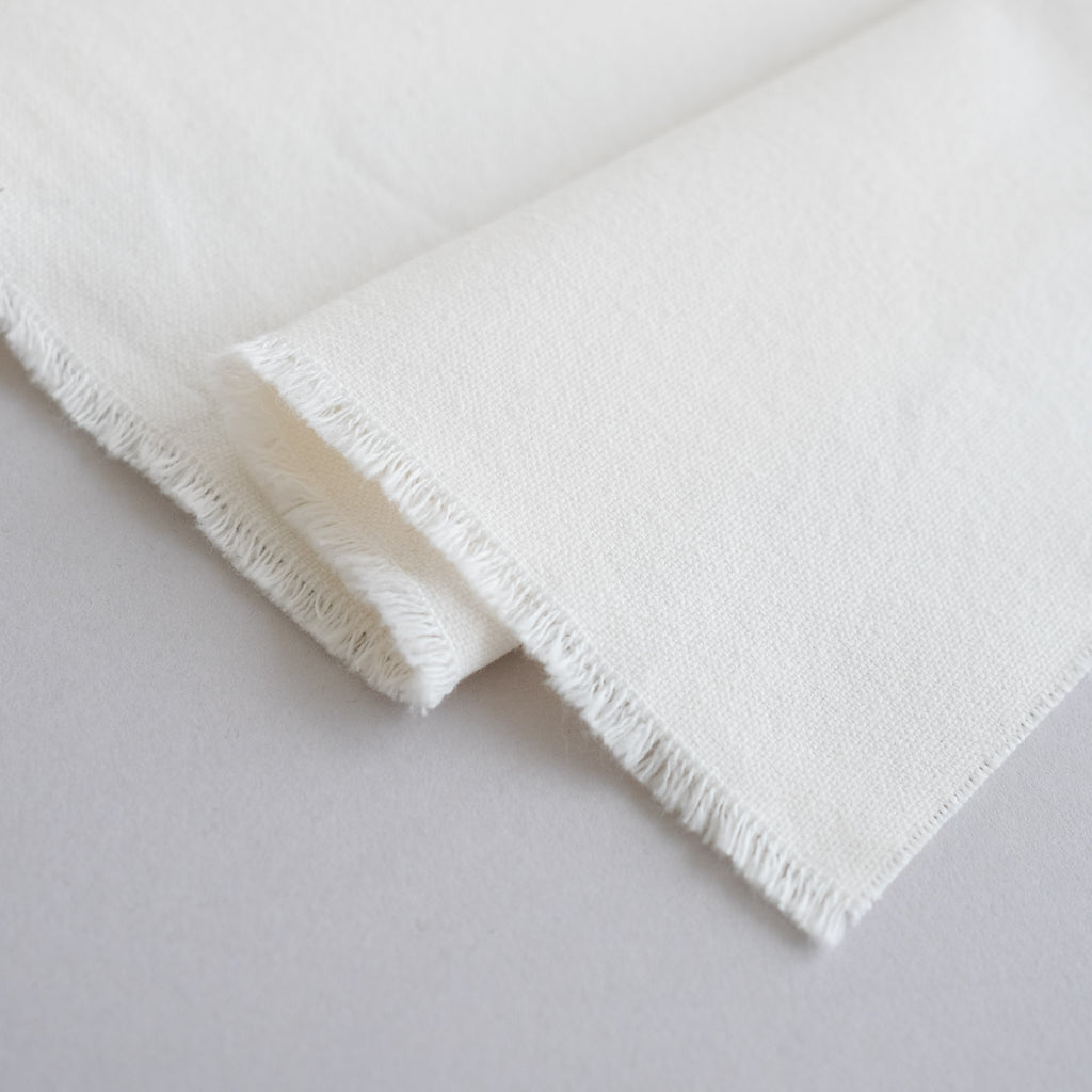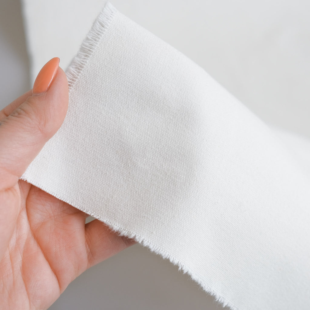 Organic cotton canvas from India.  The colour is an off-white ivory achieved with a natural whitening process using banana fibre pot ash.
