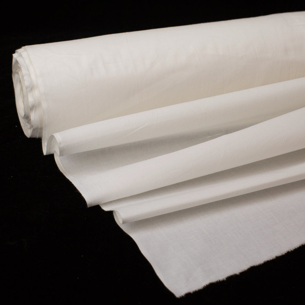 Medium weight organic cotton plain weave from India. Great all-around weight for garments, interiors, quilting, and more. The colour is an off-white ivory achieved with a natural whitening process using banana fibre pot ash.