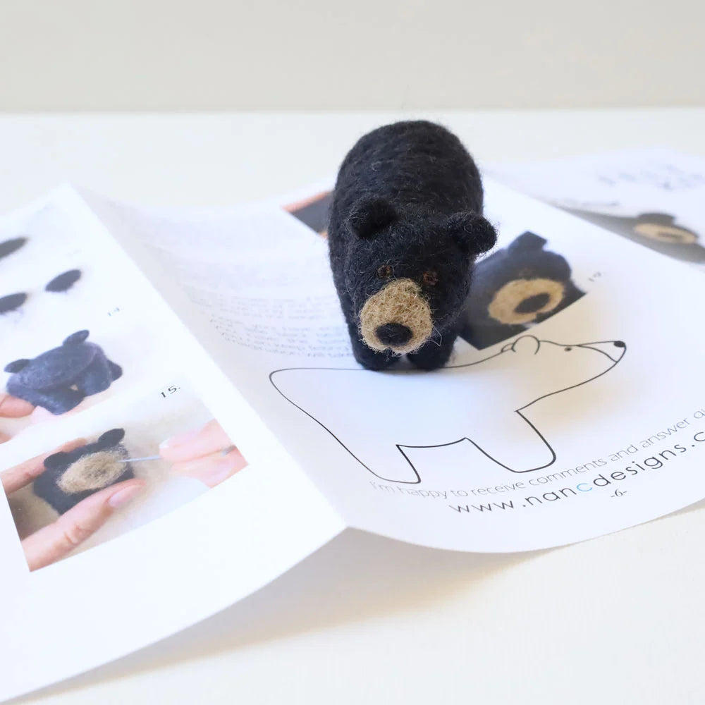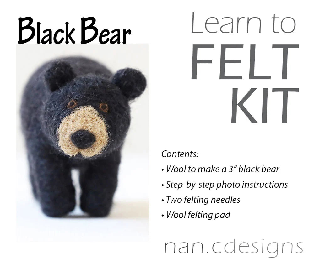 This Learn-to-Felt Kit includes everything you need: hand-dyed wool in rich black and warm accent shades, quality felting needles, a wool pad, and step-by-step photo instructions to guide you with ease. In about an hour, you’ll bring your bear to life — from a handful of wool to a sturdy little companion full of personality.