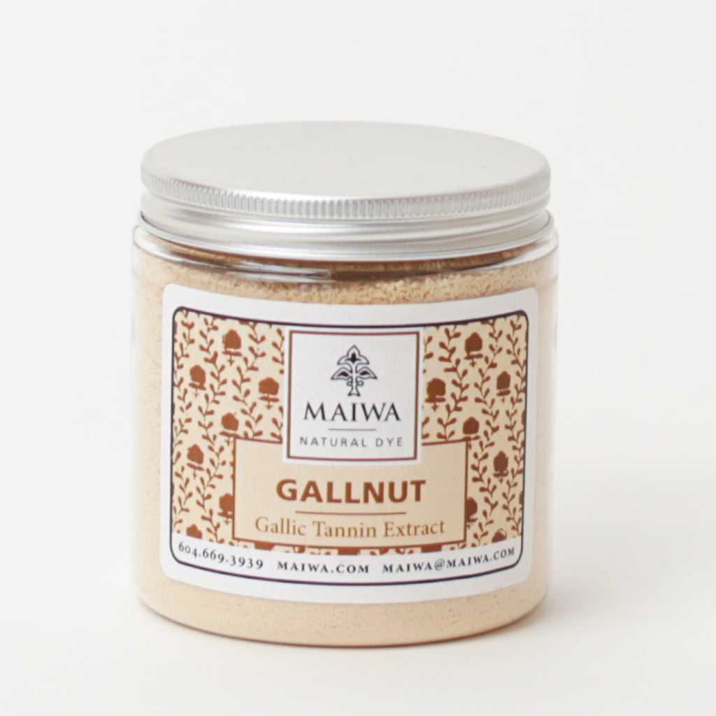 Gallnut is the earliest and richest source for natural colourless tannin and is found in the gallnuts of oak trees. They are produced by insects who deposit their eggs in small punctures they make on young branches. The tree excretes a tannin rich substance that hardens to form a gallnut. These are collected and ground for use as a tannin mordant for cellulose fibres, in the leather tanning industry, and for medicine. This extract is a rich source of gallic acid. Mordant using 6%-8% WOF