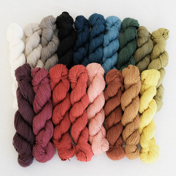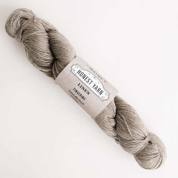 Our Linen Honest Yarn shows the raw beauty of Belgian flax, spun in Bengal. It offers a wonderful buttery hand and the exceptional weight and presence that only linen can give. Available in skeins (LACE, FINGERING & SPORT) and cones (COBWEB).