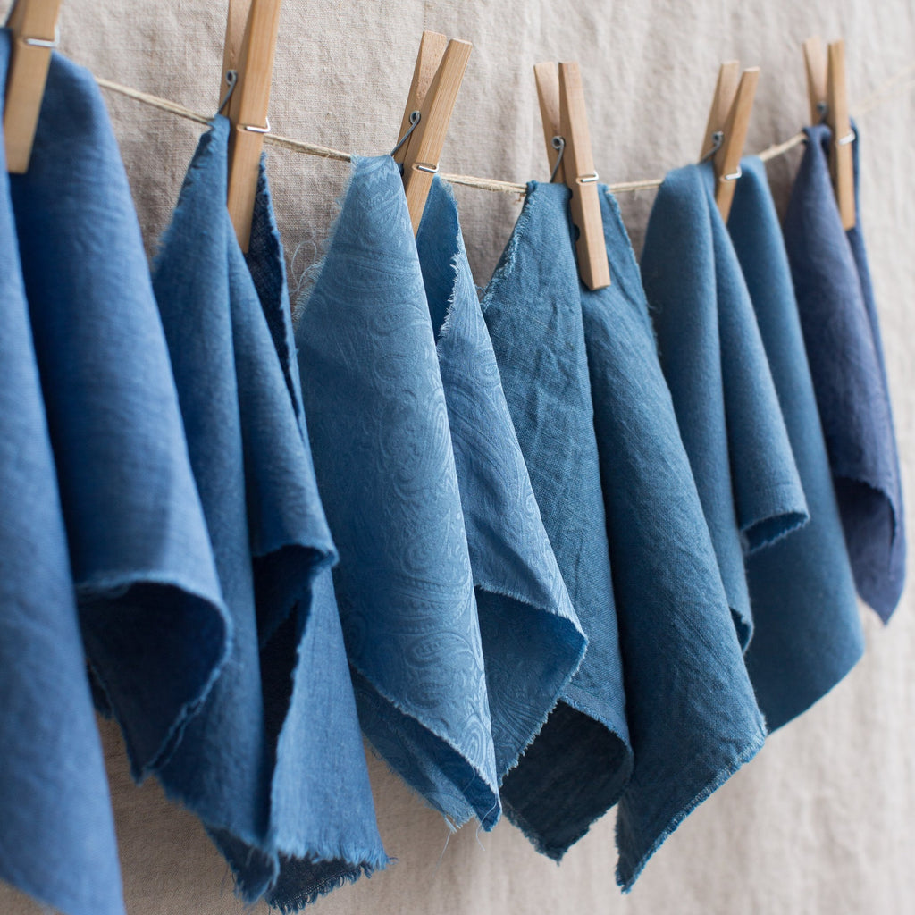 Indigo (natural) – natural indigo powder is an extract prepared from Indigofera tinctoria which is cultivated for this purpose. Indigo is the legendary source of colourfast blues and its ability to produce a wide range of shades has made it the most successful dye plant ever known. Indigo grows all over the world but flourishes best in hot, sunny, humid areas. Indigo can give clear blues that range from the tint of a pale sky to a deep navy that is almost black. Our indigo comes from a farm in south India and is very strong (approx 40% indigotin). It reduces beautifully in an indigo vat.