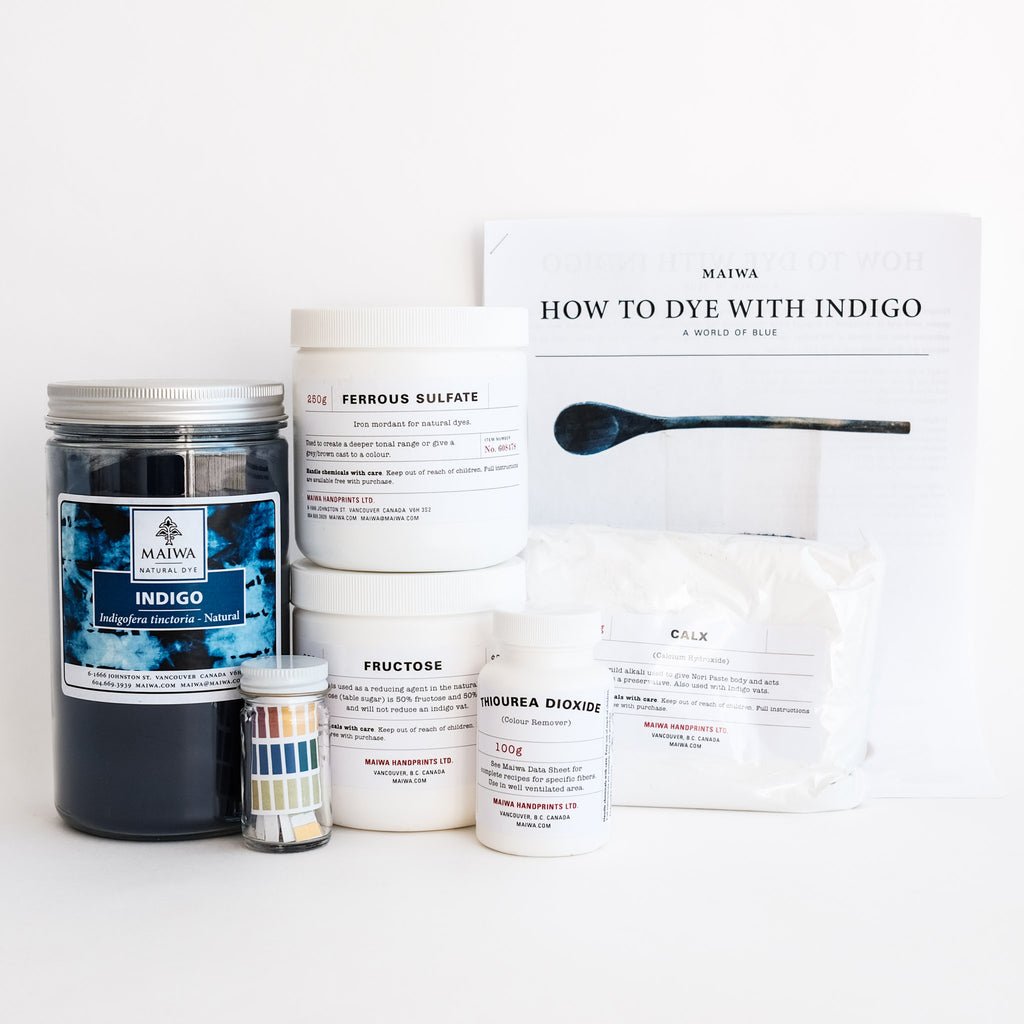 This kit gives you everything you need to start your indigo journey and explore our different vat recipes. A great way to stock your dye studio. Choose the recipe and process that works best for your practice.