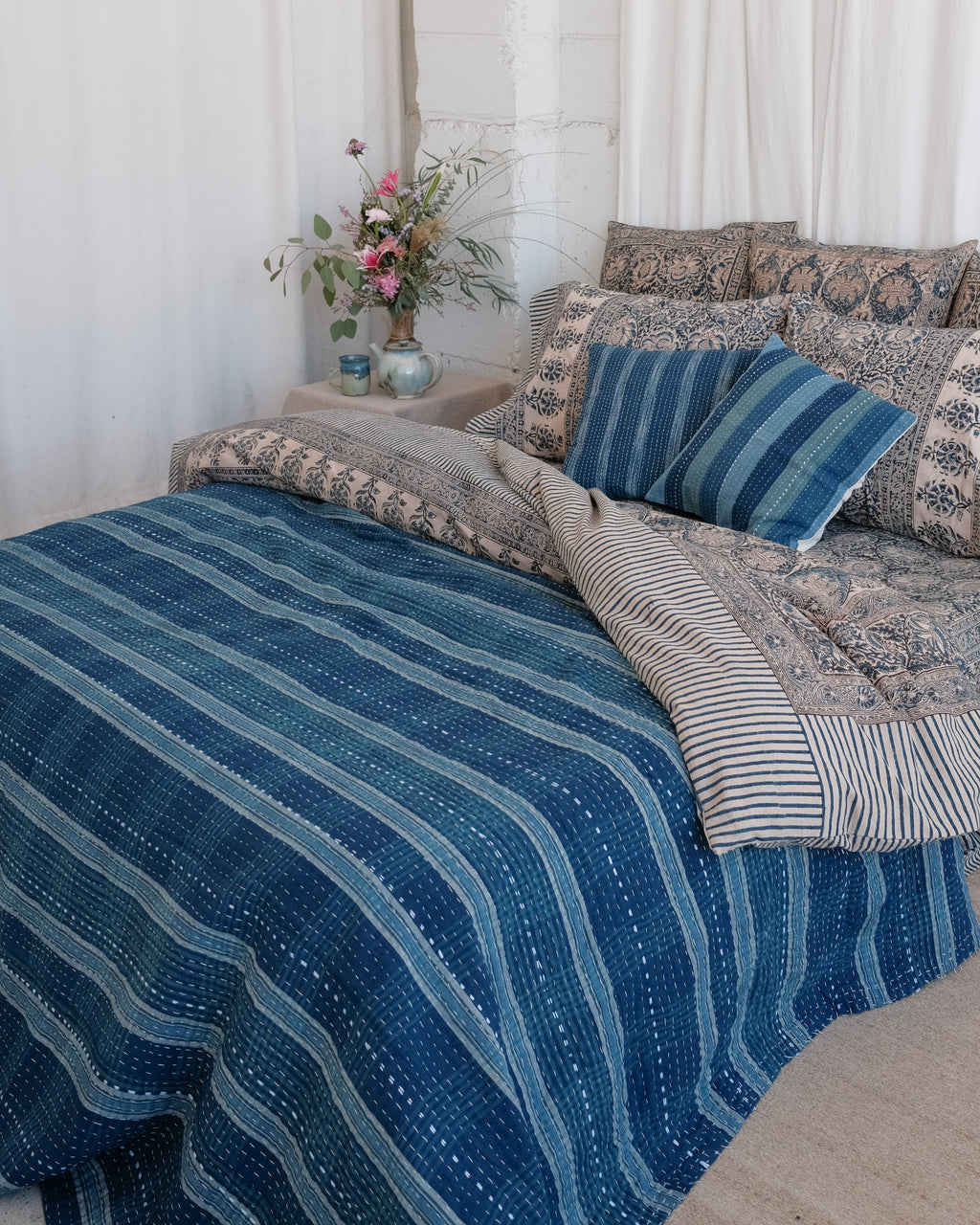 Note on Indigo Colour: Indigo is a friendly dye and likes to share its colour. You can expect some colour rub off with your new textiles. We recommend washing separately.