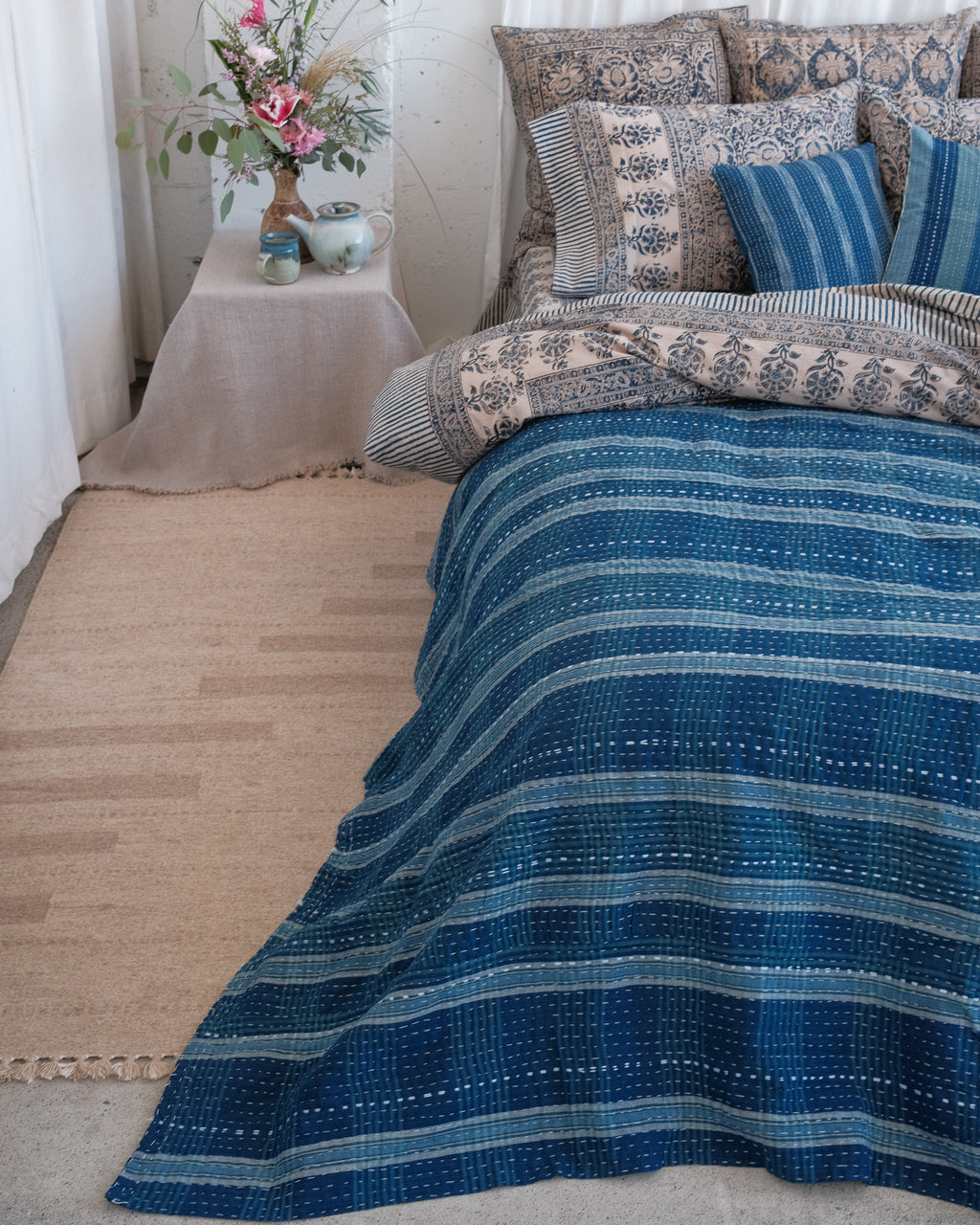 Bengal Handstitched Indigo Quilt - Waterway