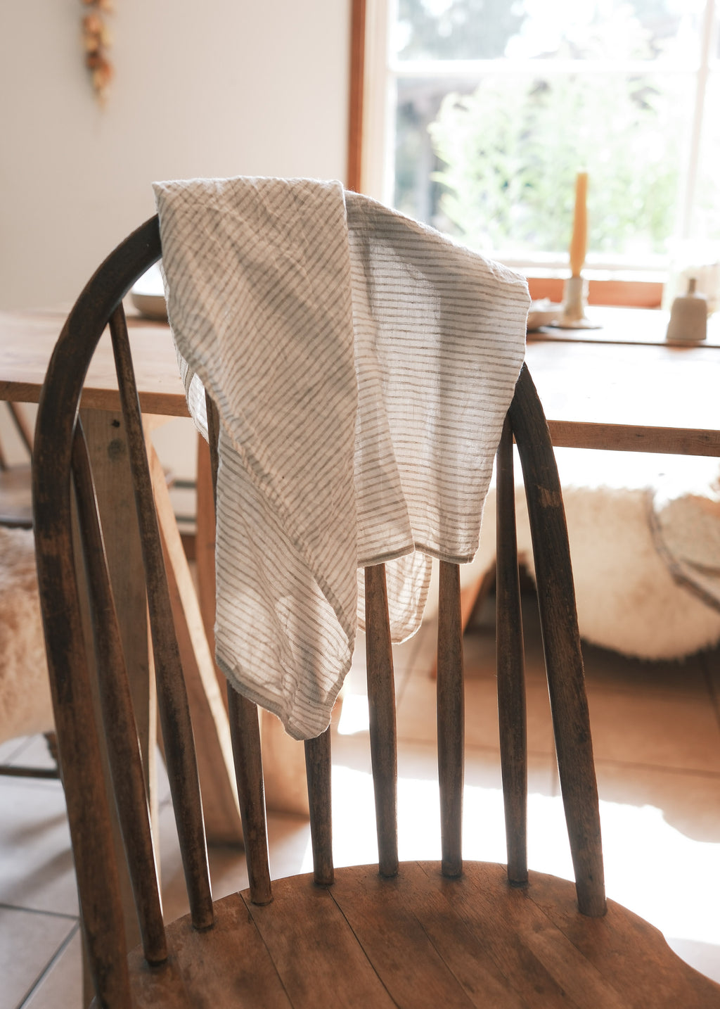 Handwoven Linen Napkin - Oat Fine Stripe