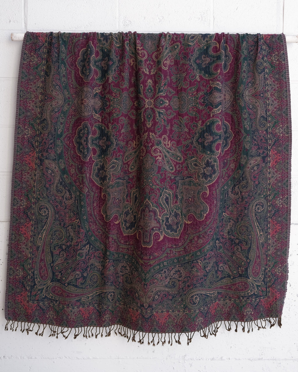 A delightfully soft merino wool blanket with intricate woven design. Styled after ancient Persian motifs and woven in Kashmir, India.  Add an accent of enrichment to your home. Snuggle under one, drape it over your knees or wrap it around you - these blankets are pure woven comfort.