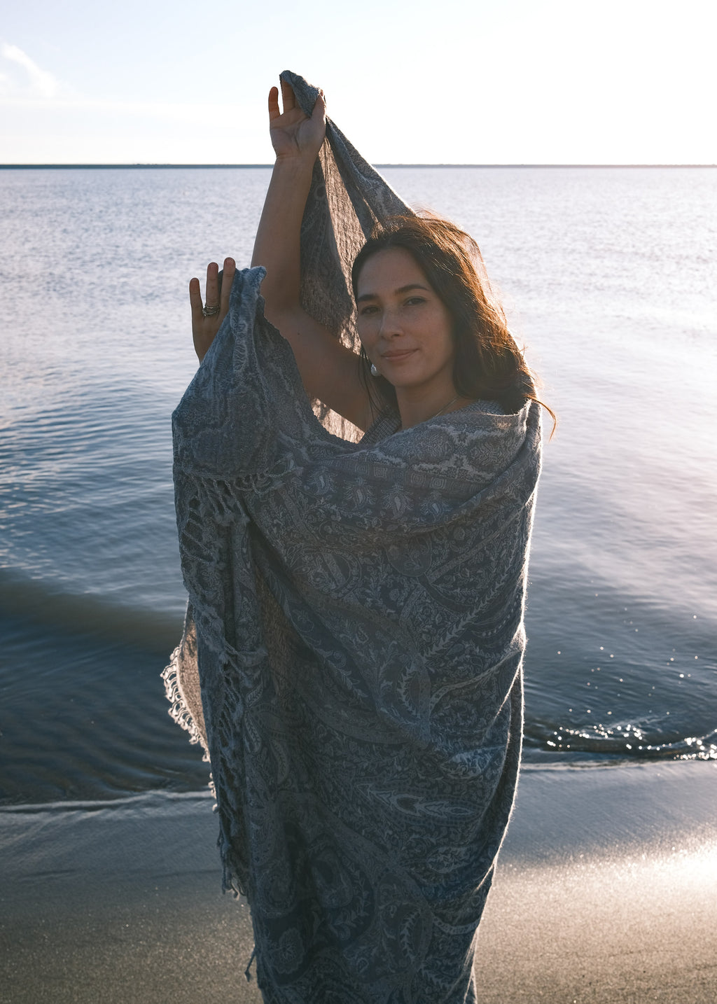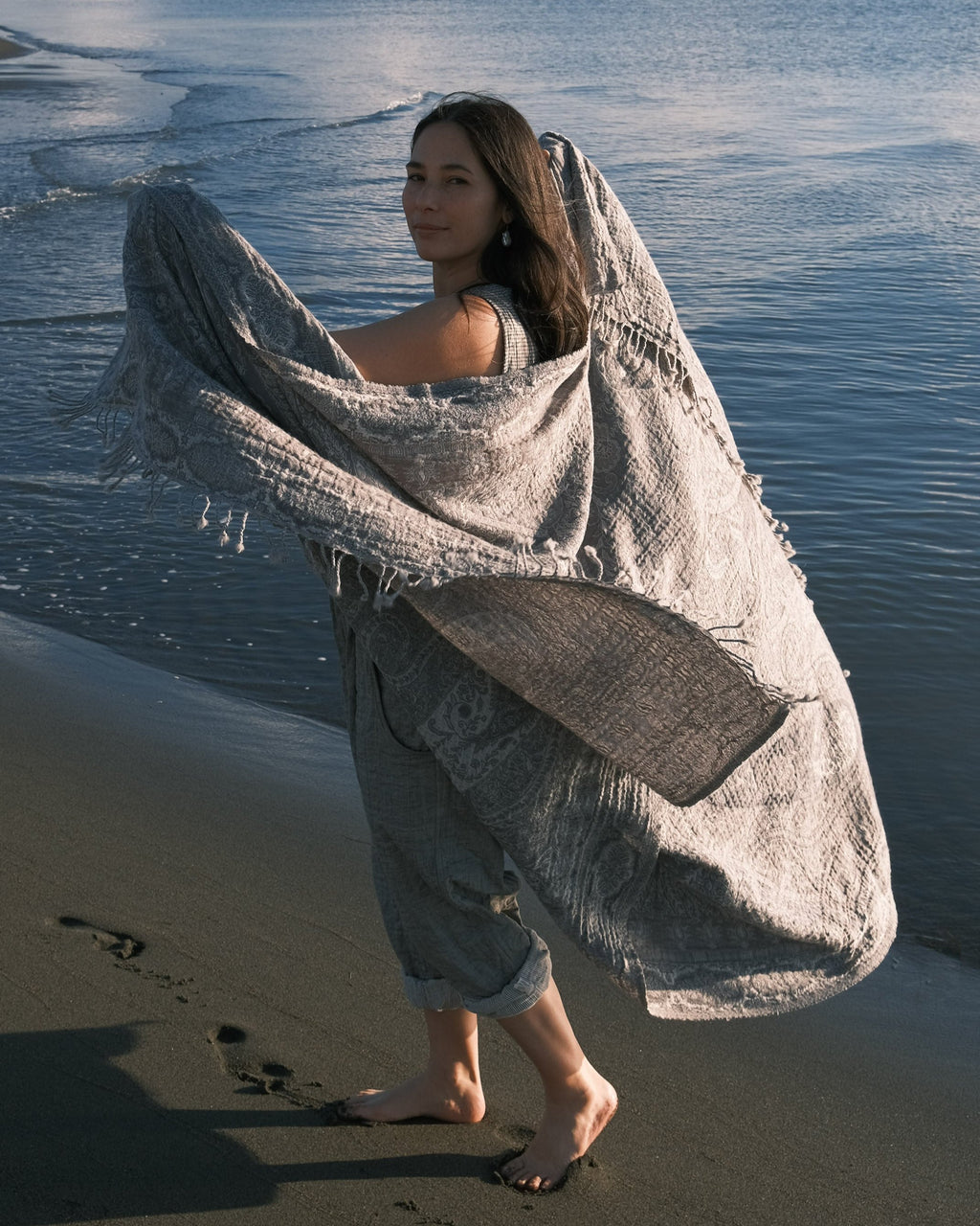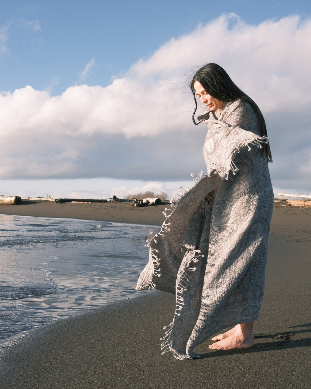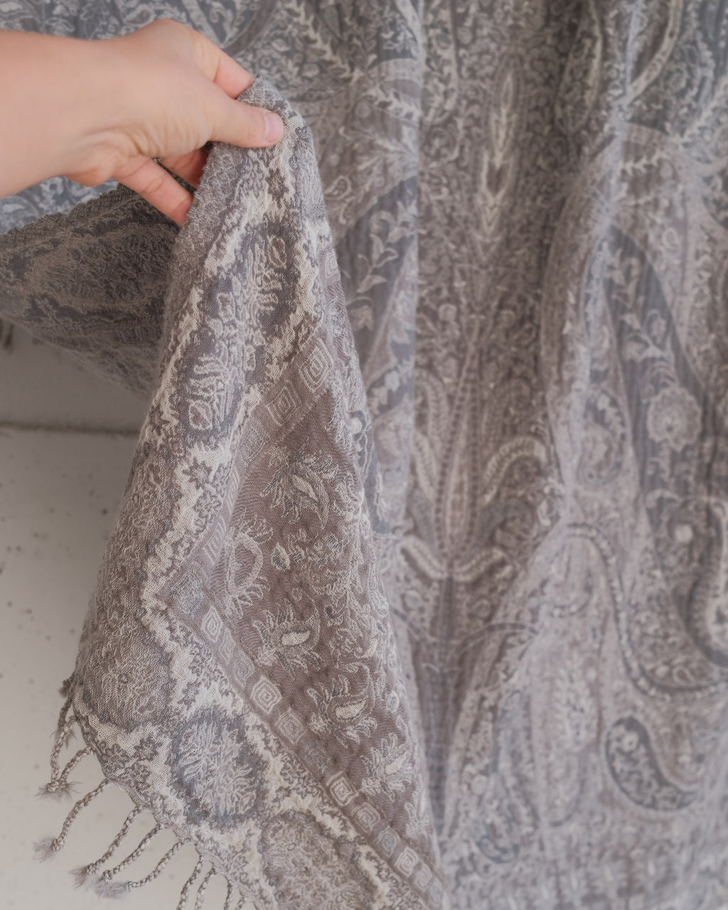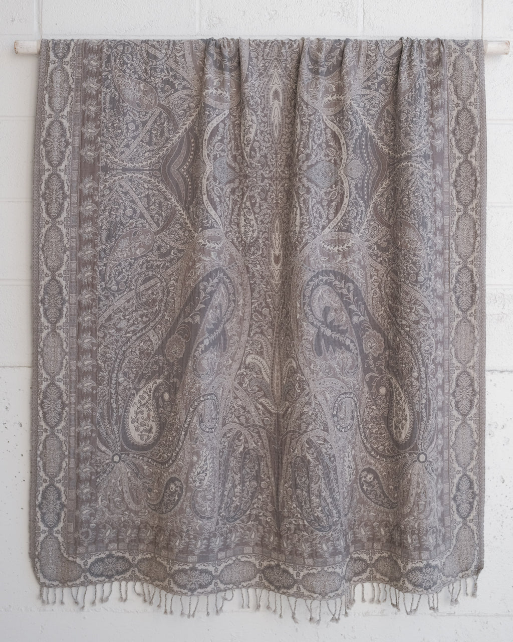 Kashmir Blanket - Merino Wool - Grey Paisley