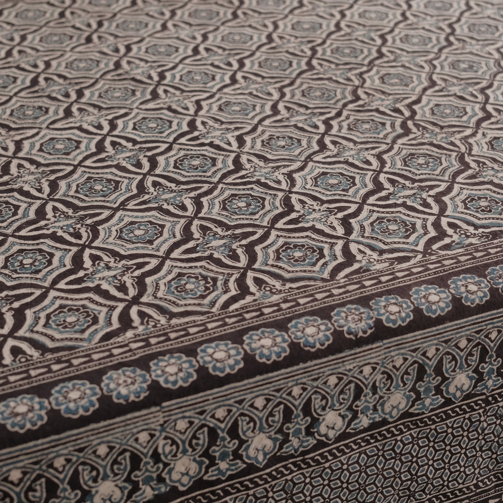 Ajrakh is a traditional style of block printing which uses hand-carved wooden blocks to print natural dyes on organic cotton. These Ajrakhs are made by a family that has been block printing for over nine generations - the Khatri family residing in the Kachchh desert of Gujarat, India.