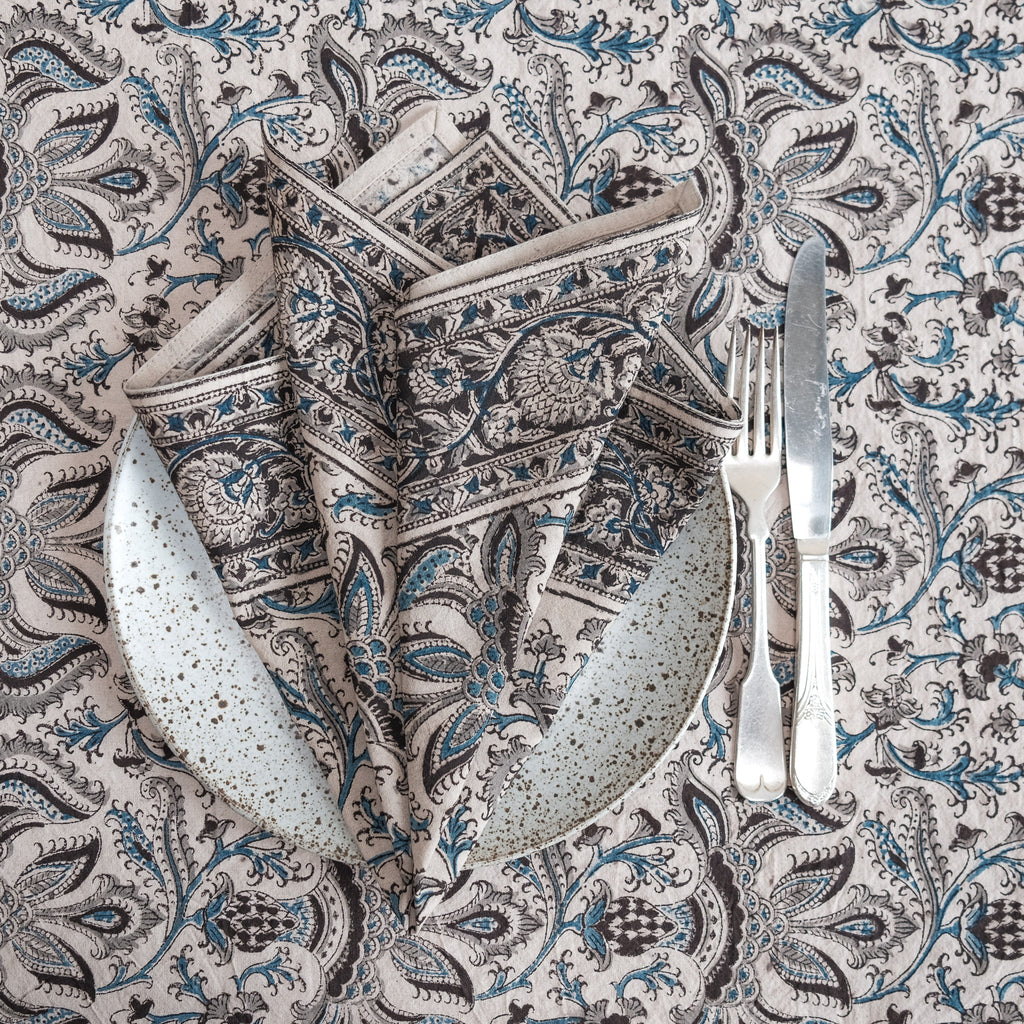 Organic Cotton Rectangle Tablecloth - Kalamkari Indigo Bounty