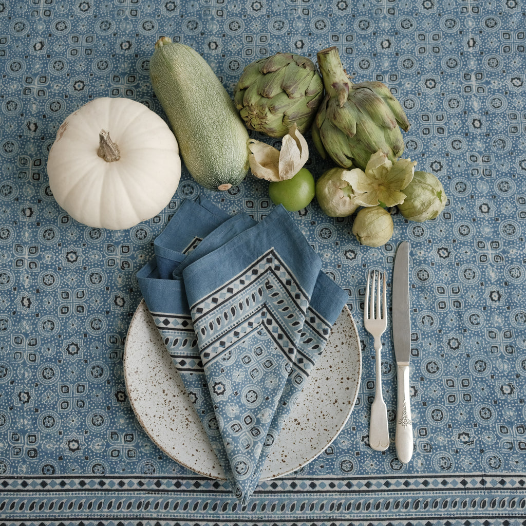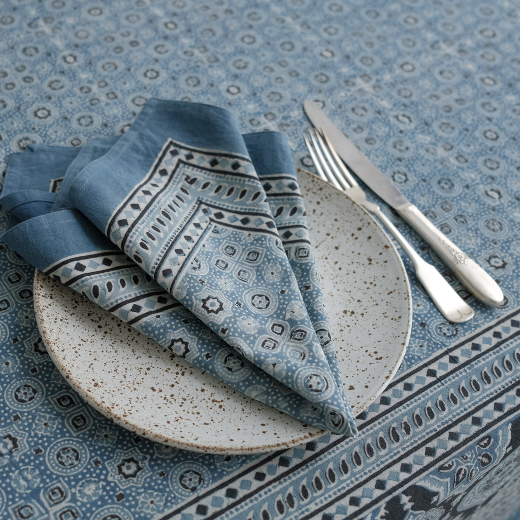 Organic Cotton Square Tablecloth - Ajrakh Indigo Alchemy