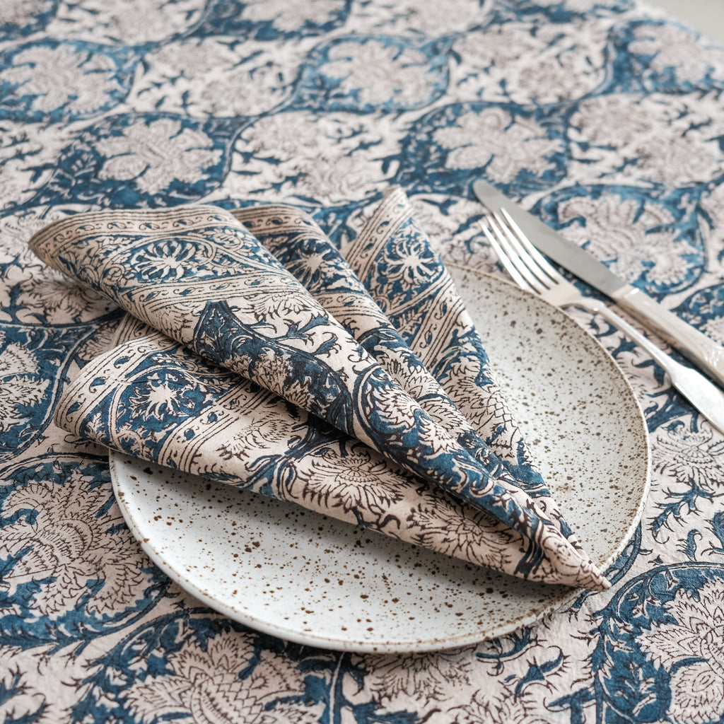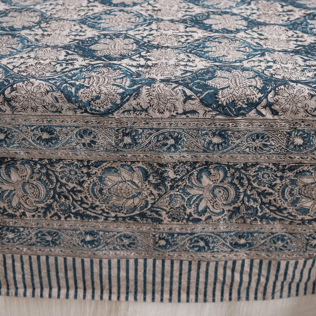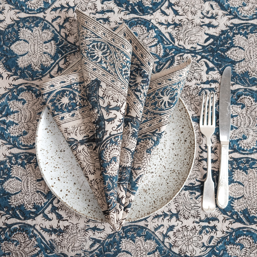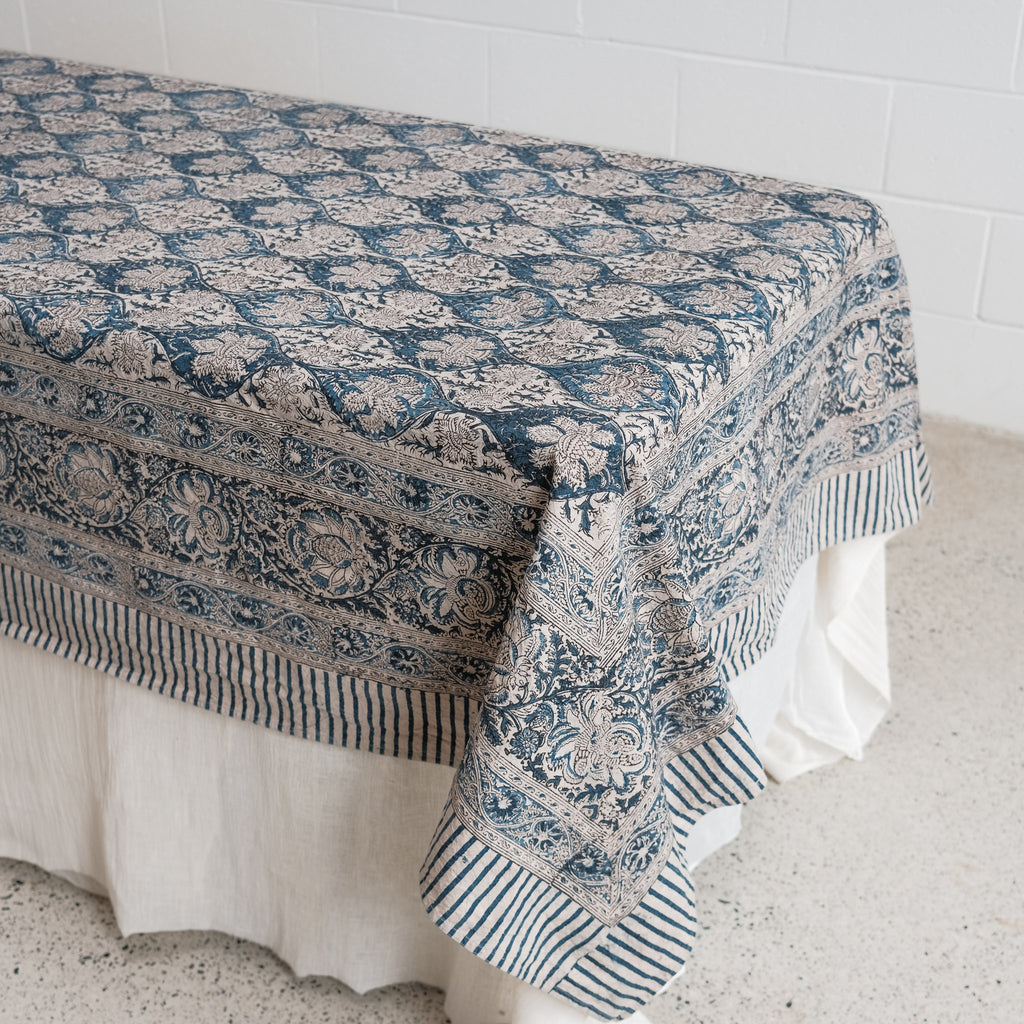 Organic Cotton Square Tablecloth - Kalamkari Indigo Palm