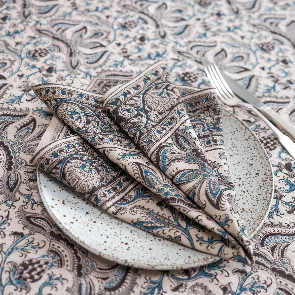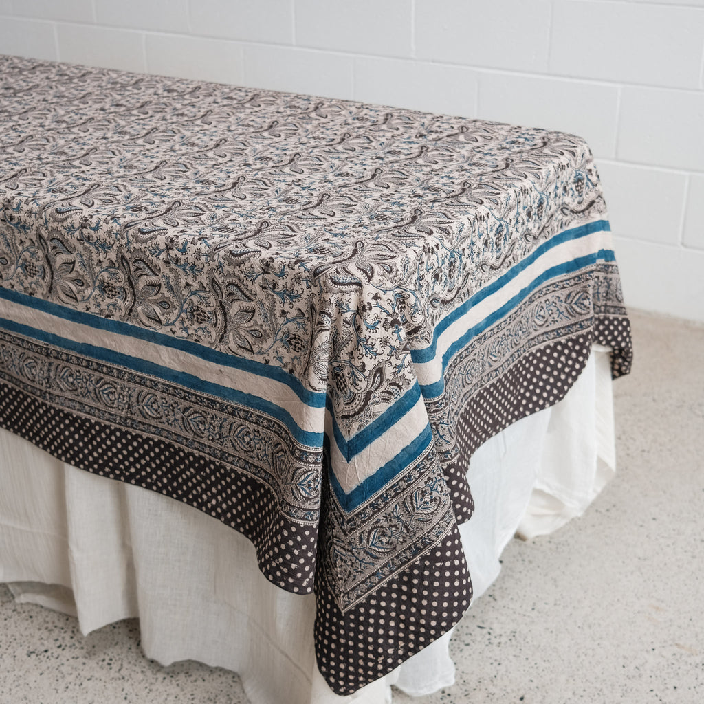 Organic Cotton Square Tablecloth - Kalamkari Indigo Bounty
