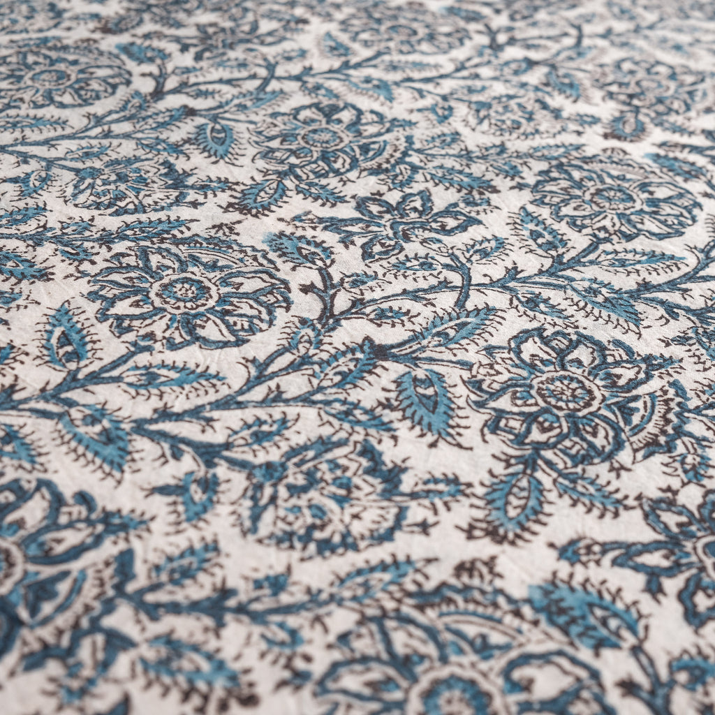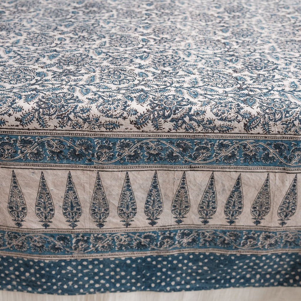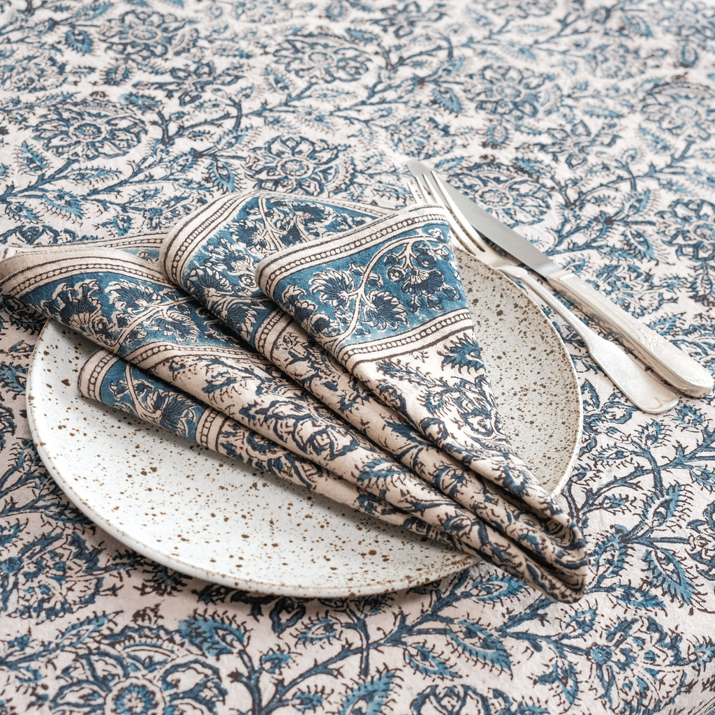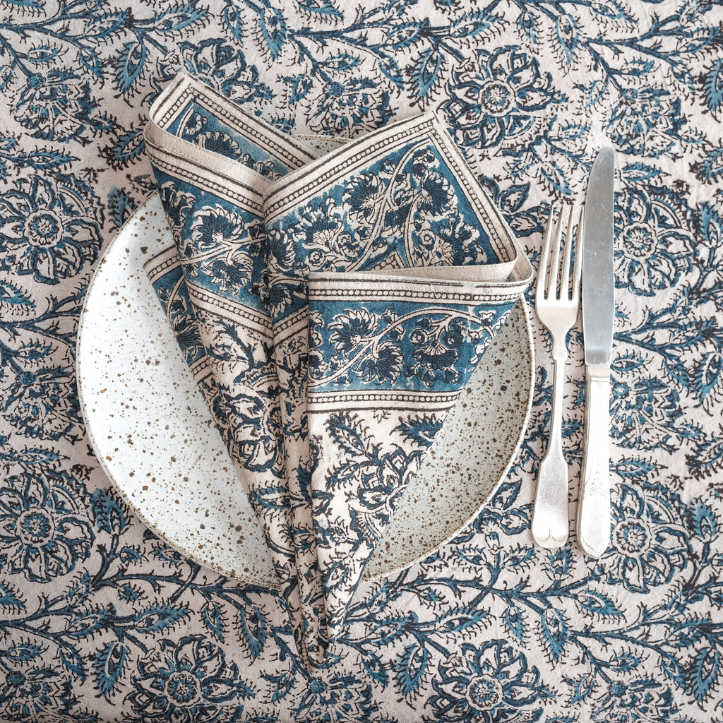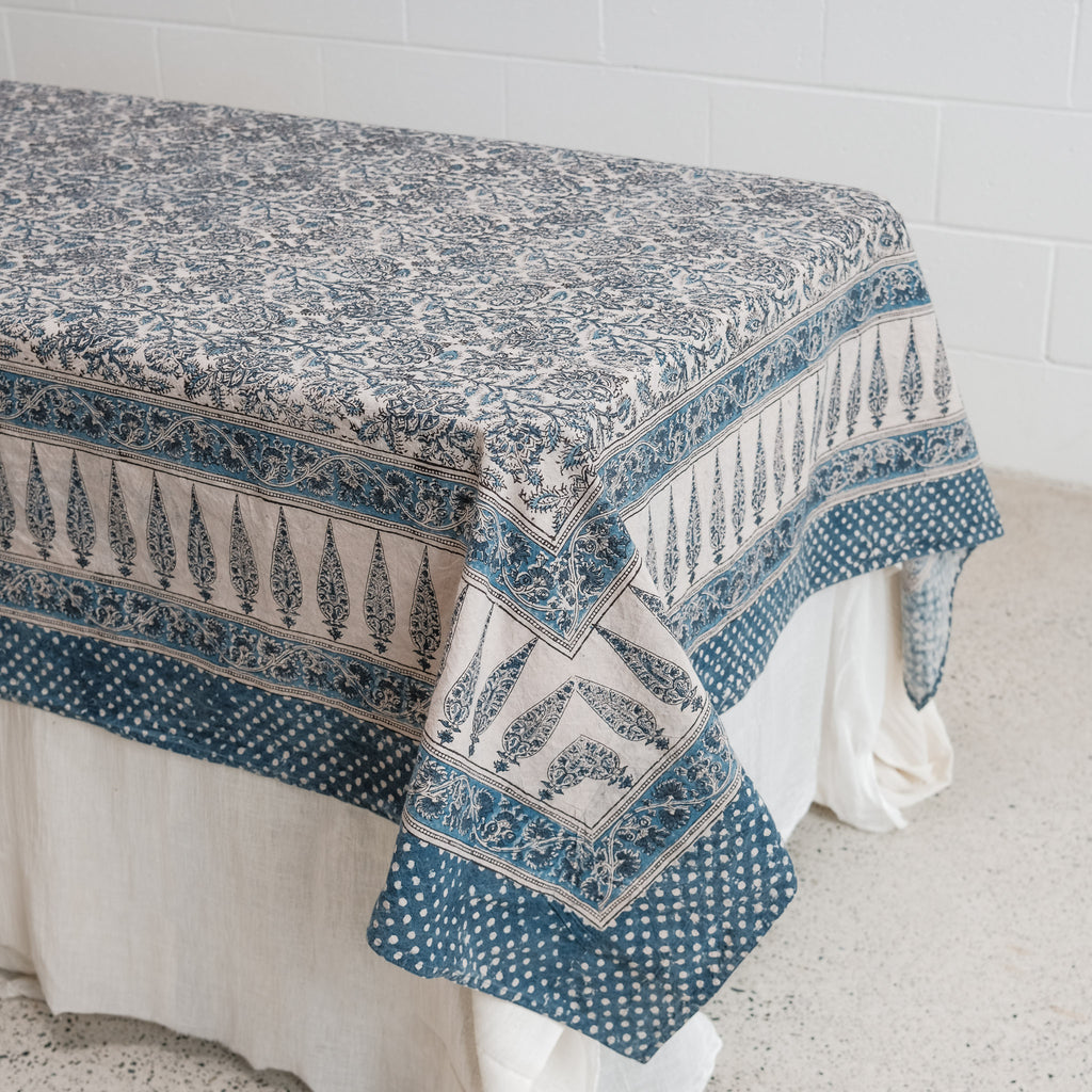 Organic Cotton Square Tablecloth - Kalamkari Indigo Fleur