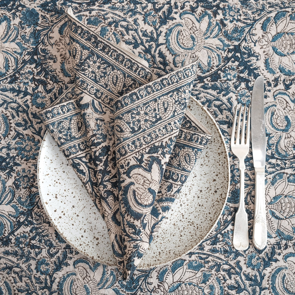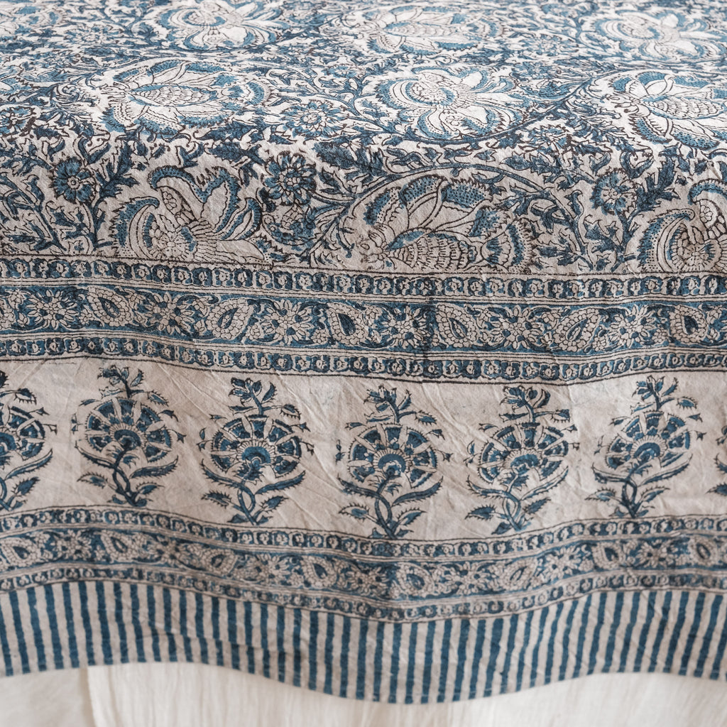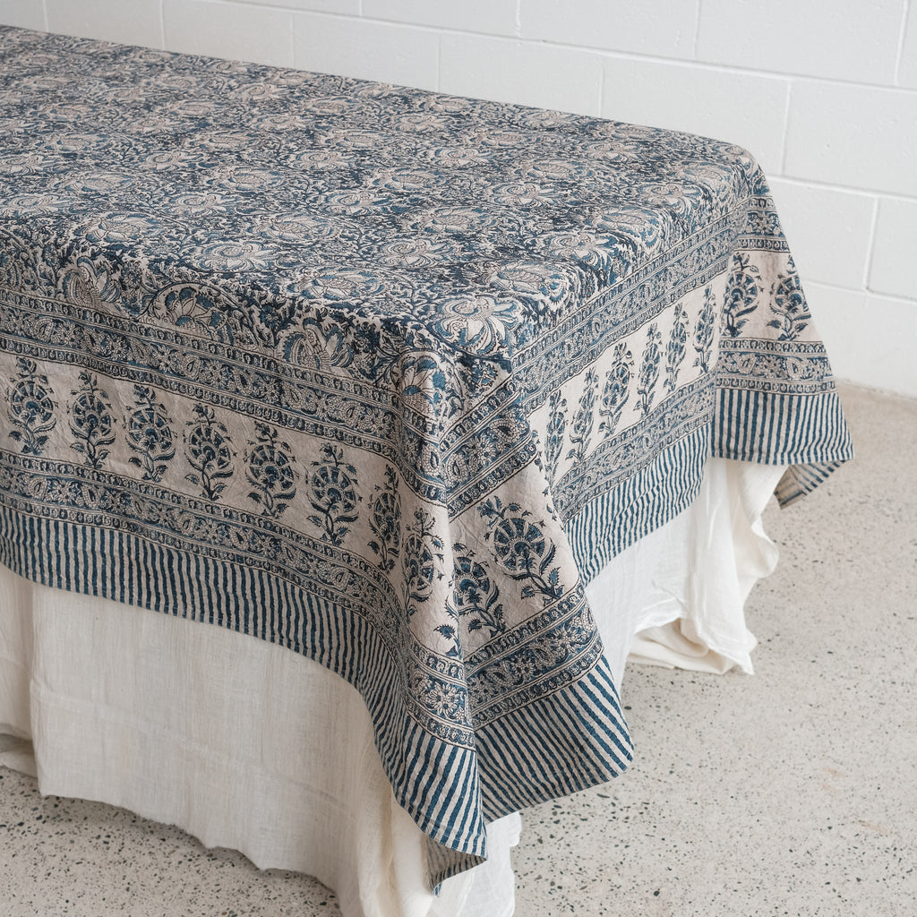 Organic Cotton Square Tablecloth - Kalamkari Indigo Garden