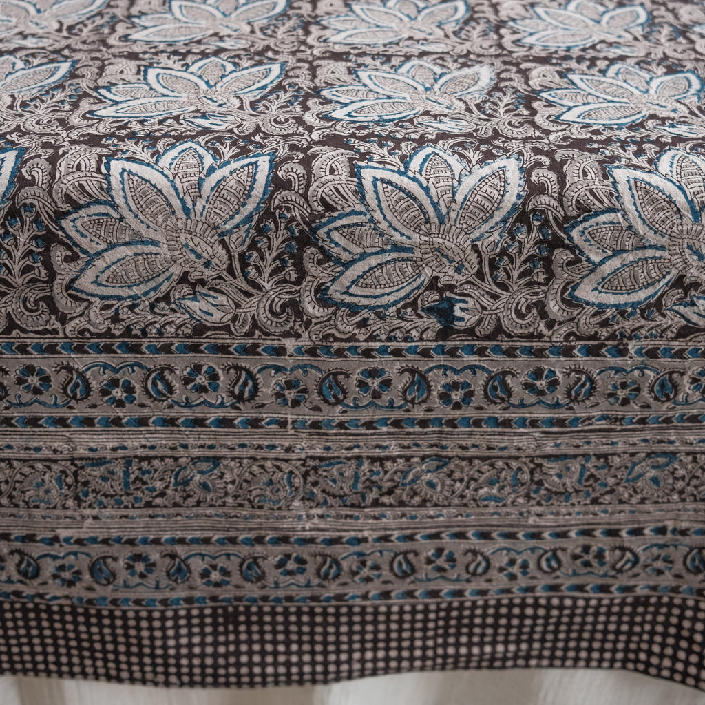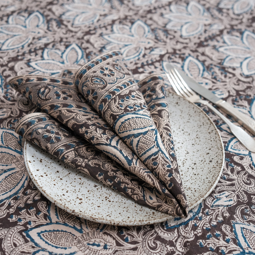 Organic Cotton Square Tablecloth - Kalamkari Night Bloom