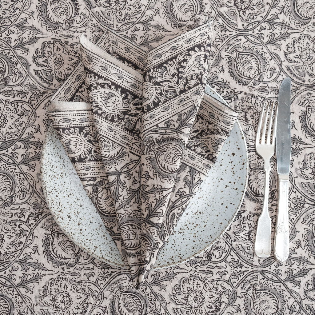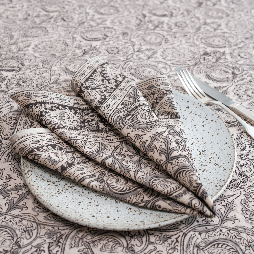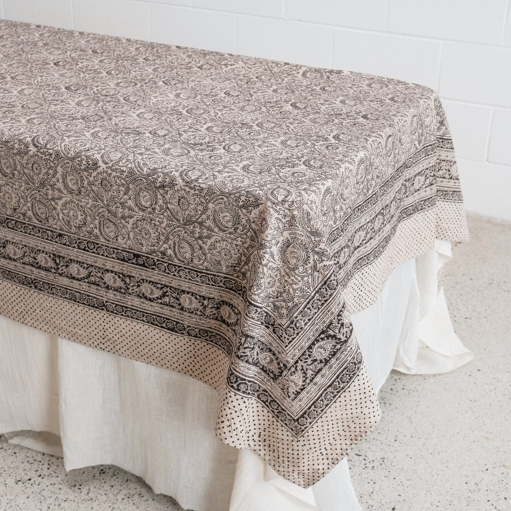 Organic Cotton Square Tablecloth - Kalamkari Moonlit Fleur
