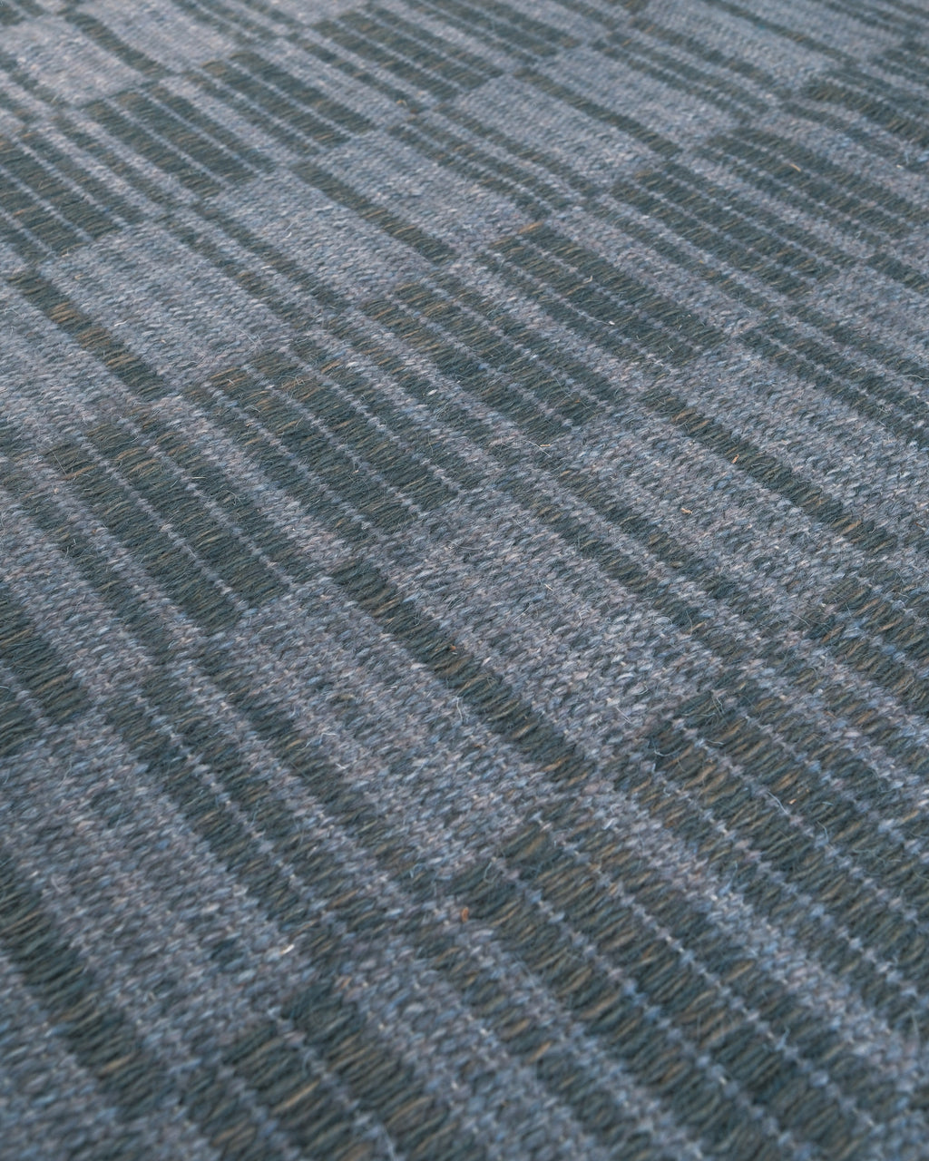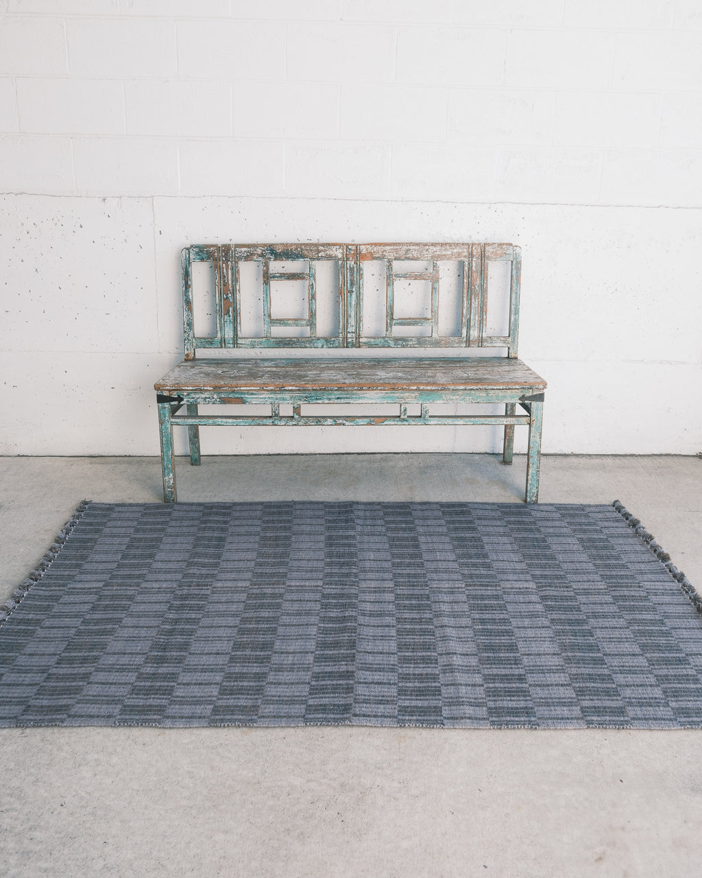 A handwoven wool carpet with a sturdy cotton warp made by village artisans in Rajasthan, India. The natural fibres of the local desert sheep make these flat-weave rugs long lasting and durable.