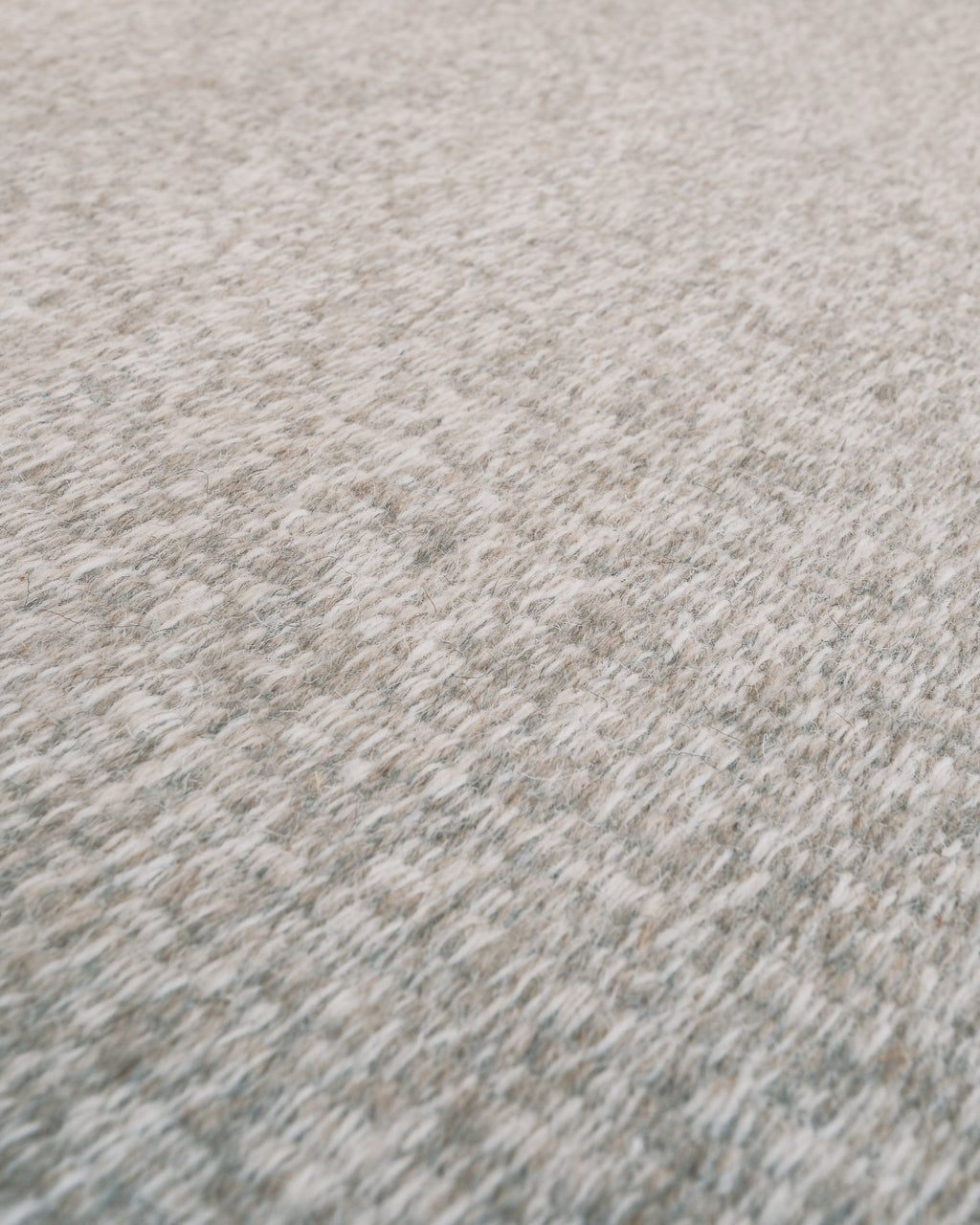A handwoven wool carpet with a sturdy cotton warp made by village artisans in Rajasthan, India. The natural fibres of the local desert sheep make these flat-weave rugs long lasting and durable.