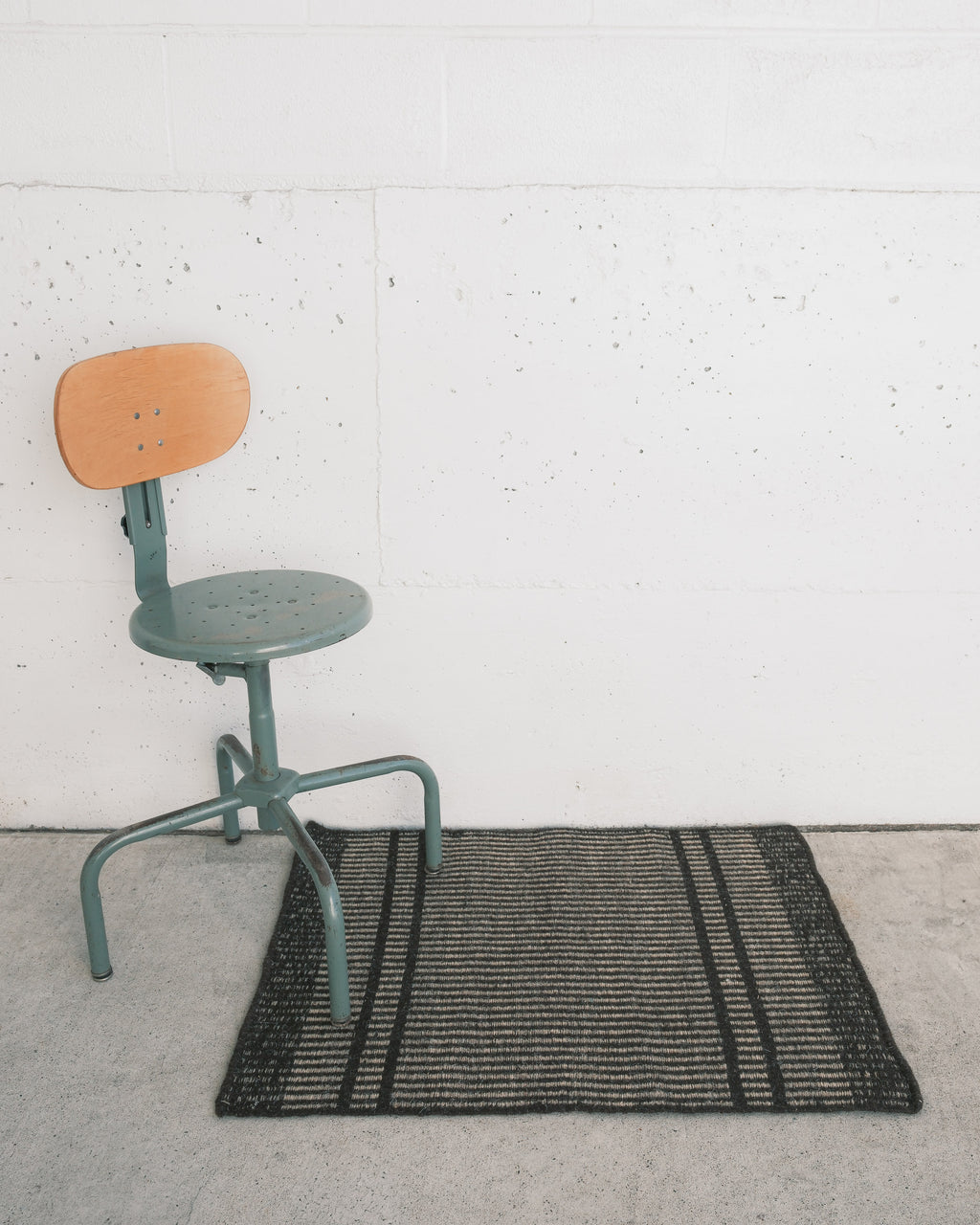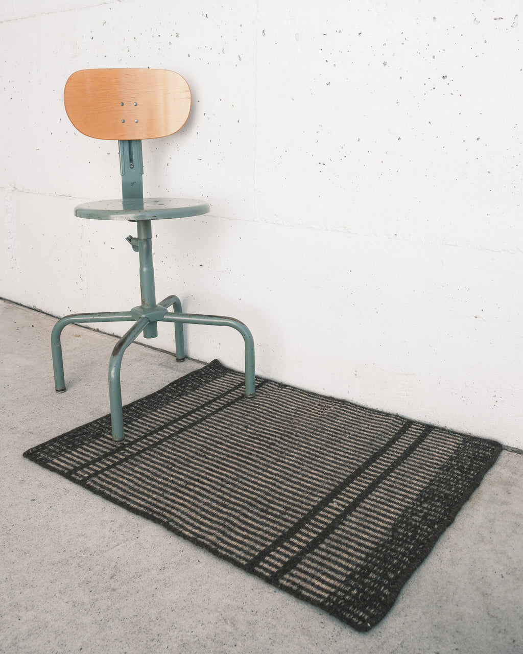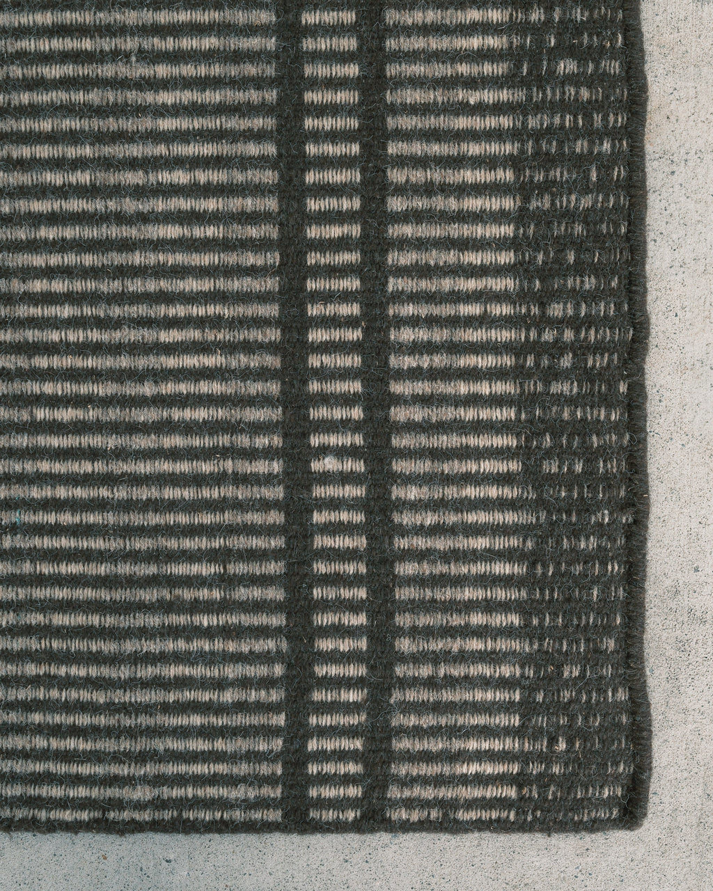 A handwoven wool carpet with a sturdy cotton warp made by village artisans in Rajasthan, India. The natural fibres of the local desert sheep make these flat-weave rugs long lasting and durable.