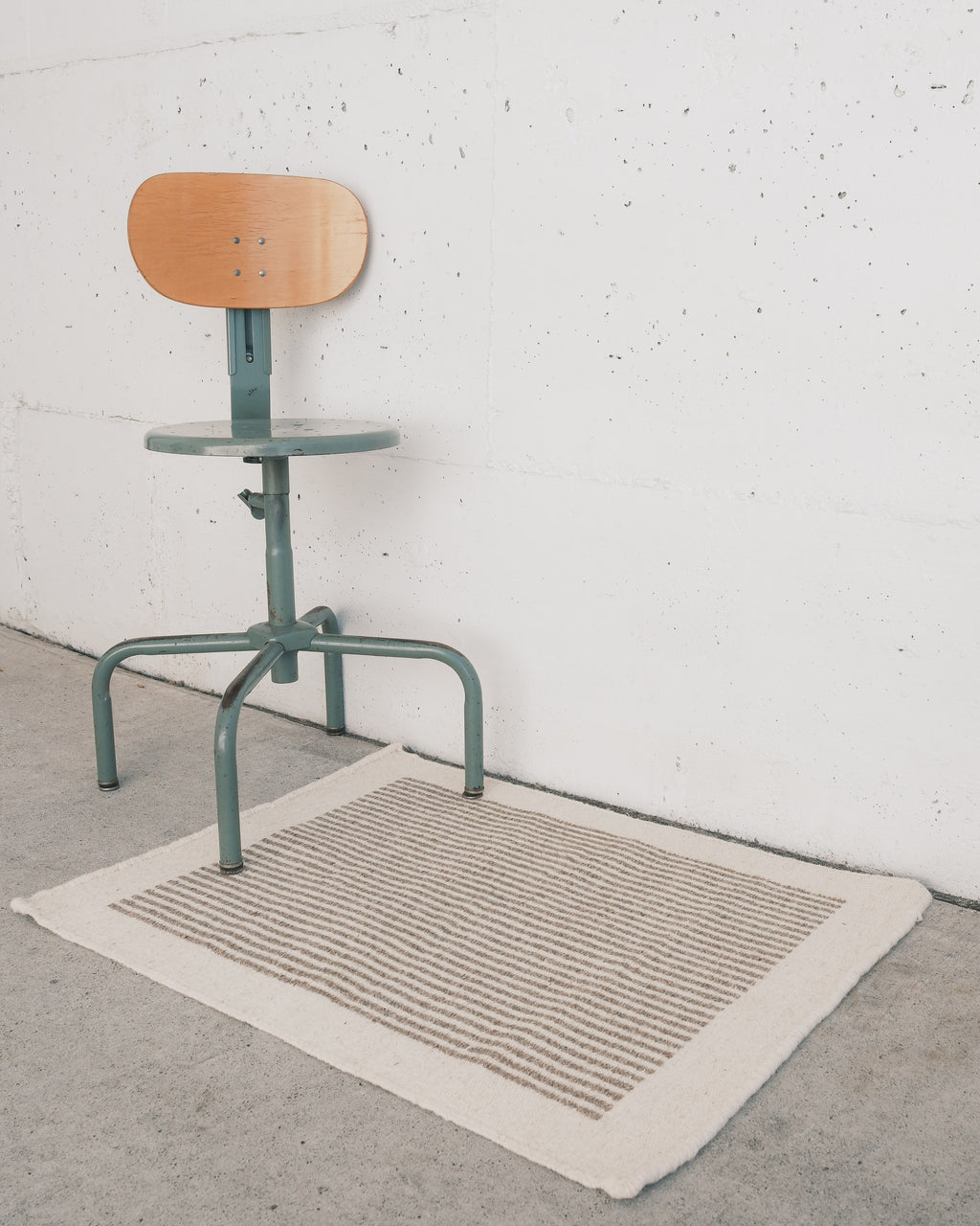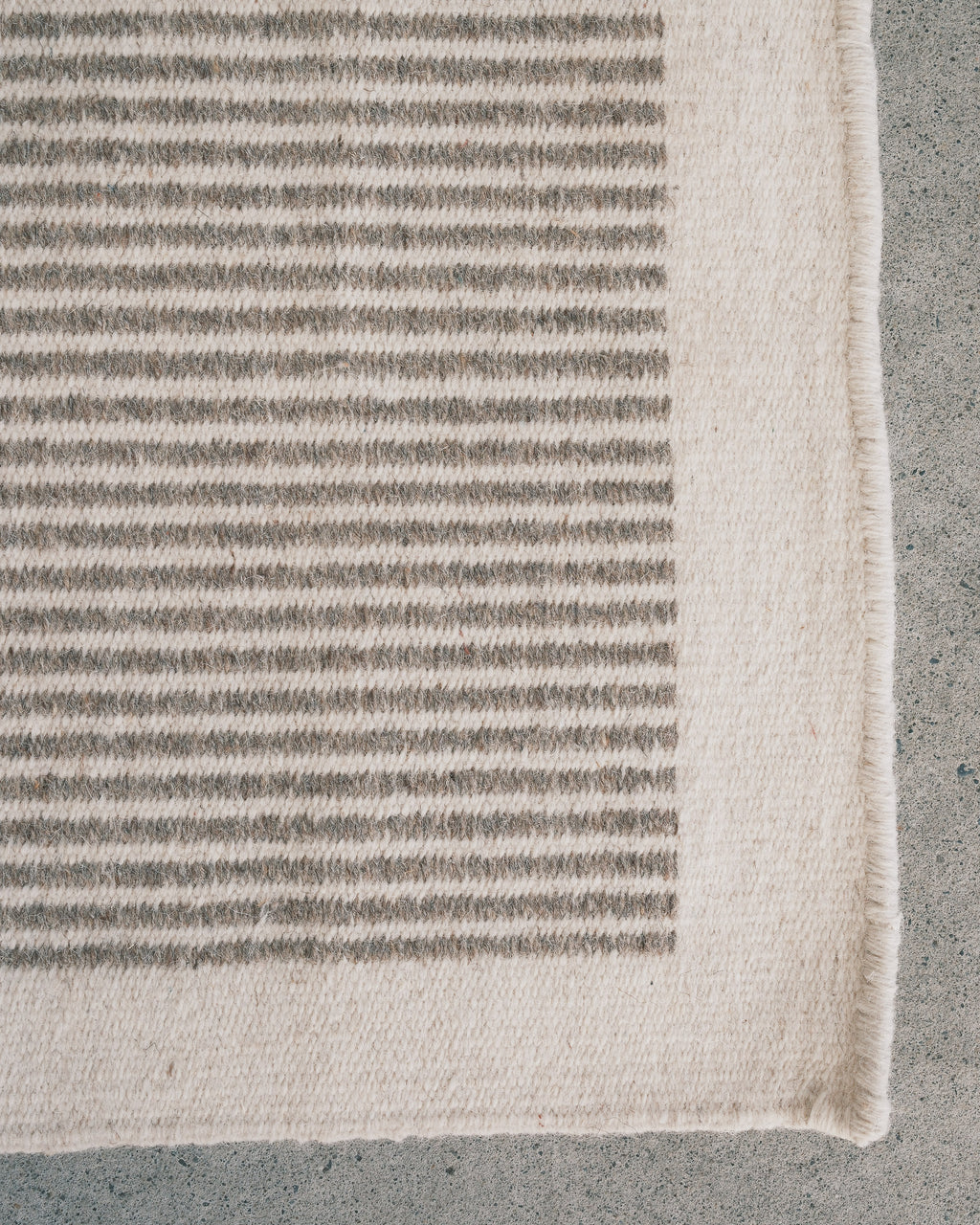 A handwoven wool carpet with a sturdy cotton warp made by village artisans in Rajasthan, India. The natural fibres of the local desert sheep make these flat-weave rugs long lasting and durable.