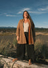 A favourite coat style with a standing collar, beautiful drape and added quilting. This version features 2 layers of handwoven and naturally dyed cotton with cotton flannel inside for additional warmth this season. Hand-carved horn buttons down the front and deep side pockets.