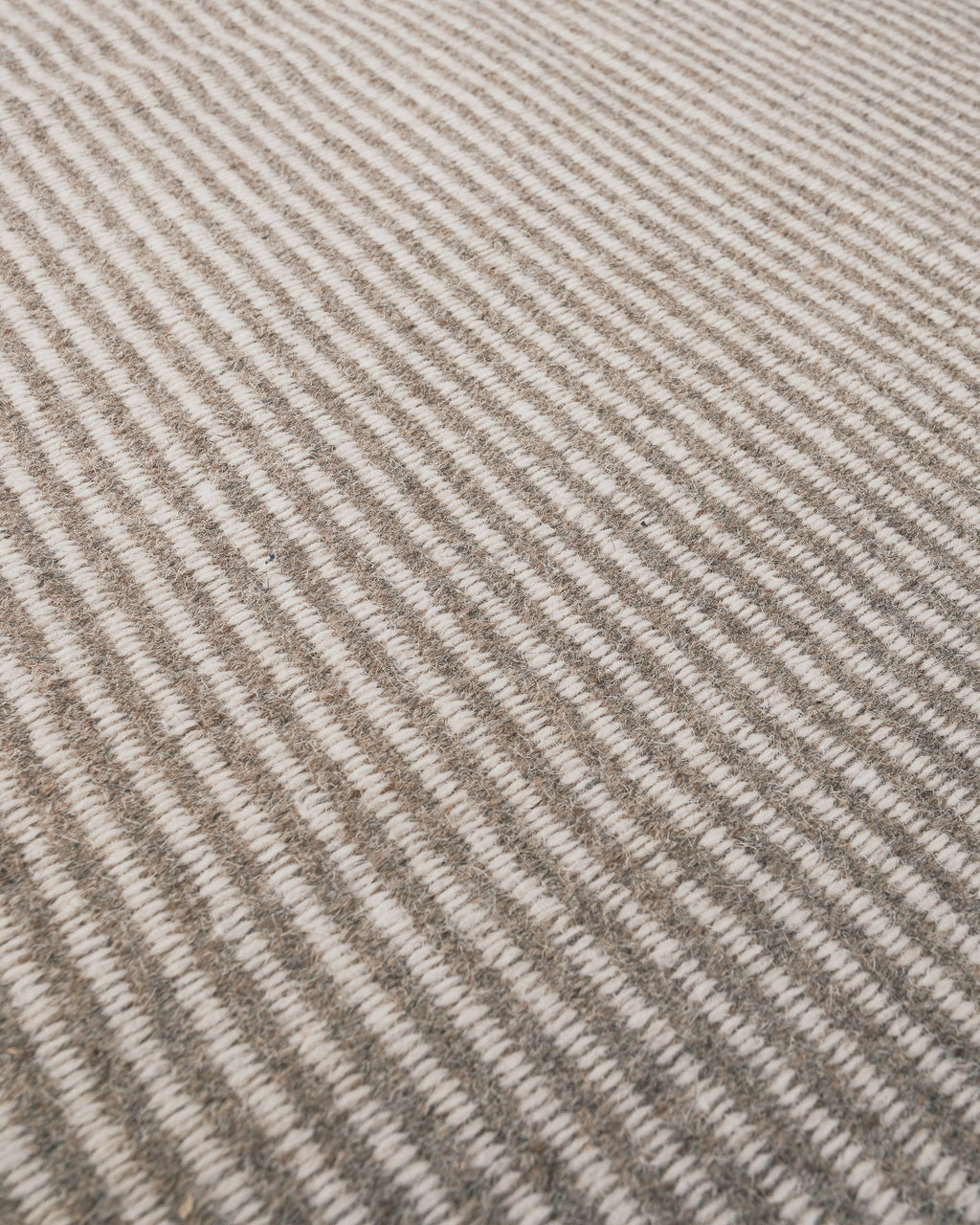 A handwoven wool carpet with a sturdy cotton warp made by village artisans in Rajasthan, India. The natural fibres of the local desert sheep make these flat-weave rugs long lasting and durable.