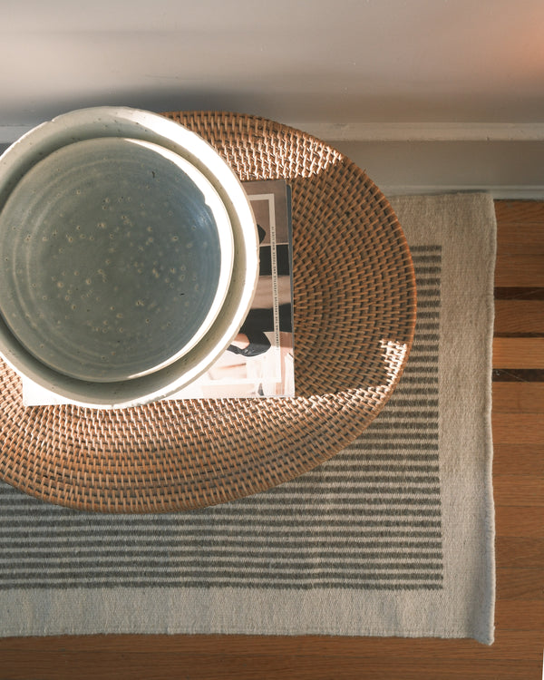 Jawaja flatweave carpets are designed for everyday use. Starting with a cotton warp, local wools are intertwined into a tight weft-face. They are often constructed in bold, simple, geometric patterns that bring a measure of colour and light to the rooms that they adorn.
