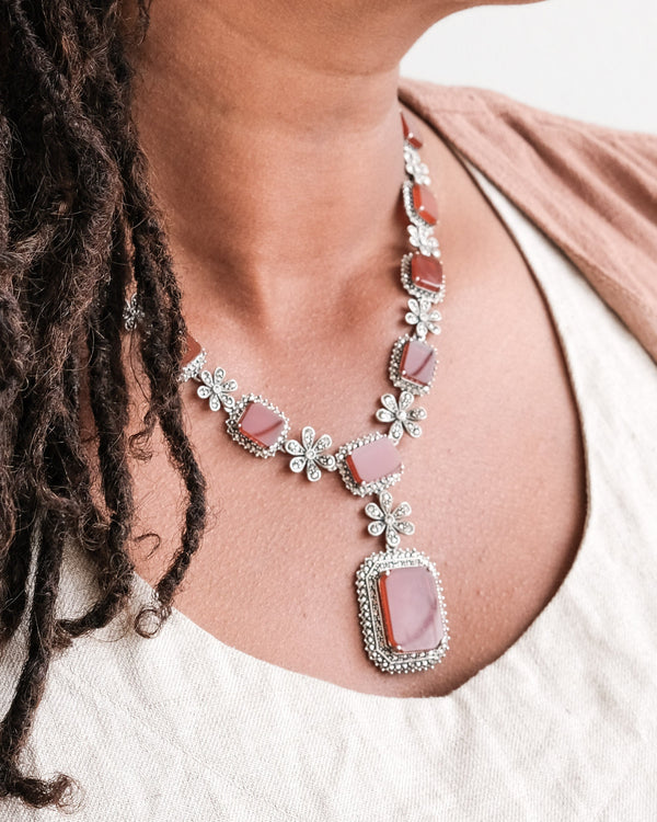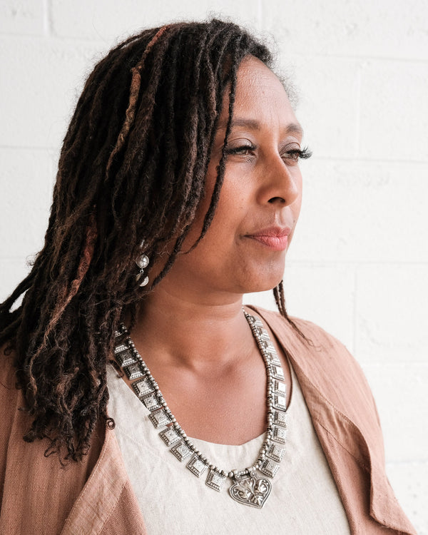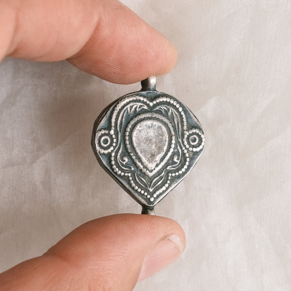 We seek out silver tribal jewelry, such as amulets, necklaces, earrings, traditional miniature painted pendants, and more. When working in India we employ local silversmiths to set stones and traditional pieces in 92.5% silver settings.