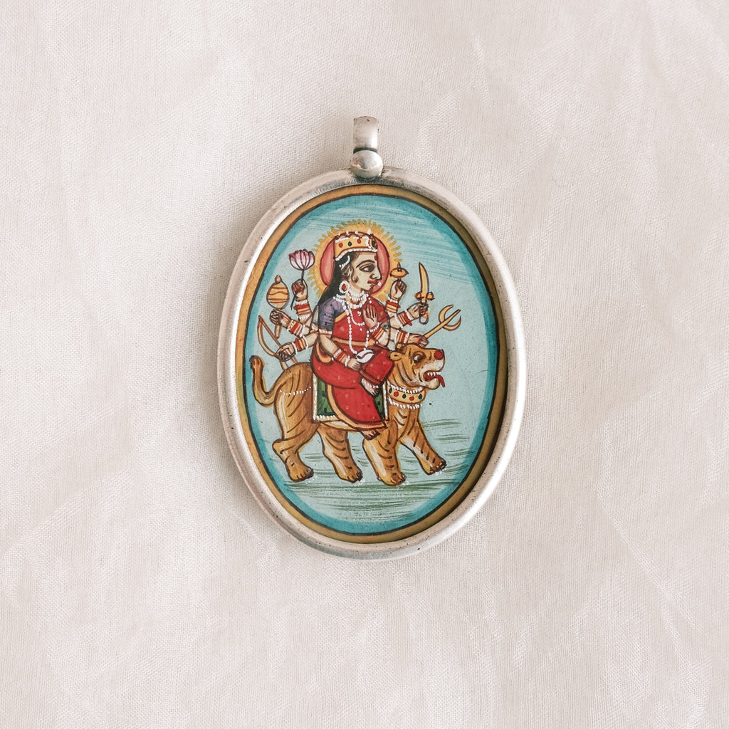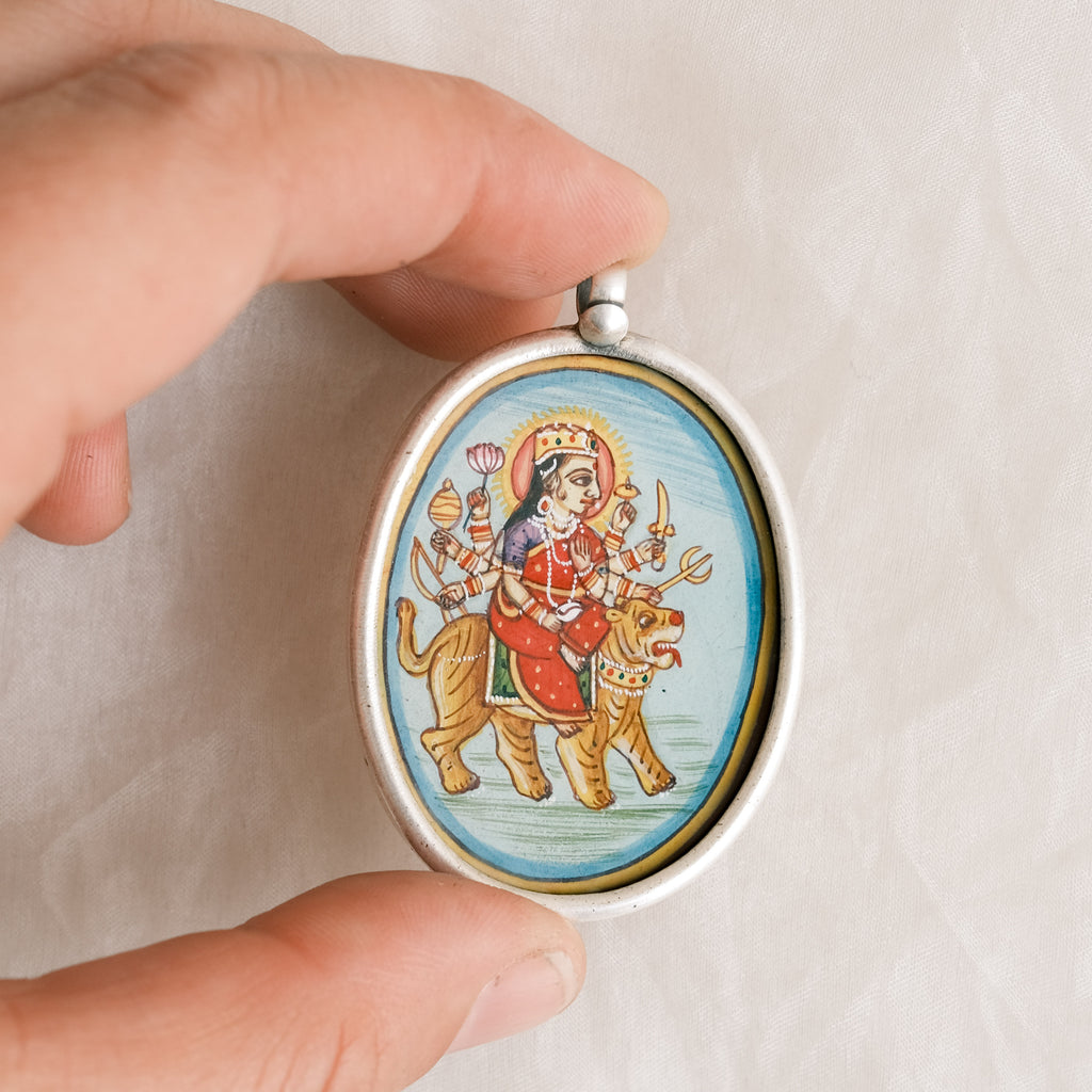 Jewellery - Hand Painted Pendant - Durga Goddess on Tiger