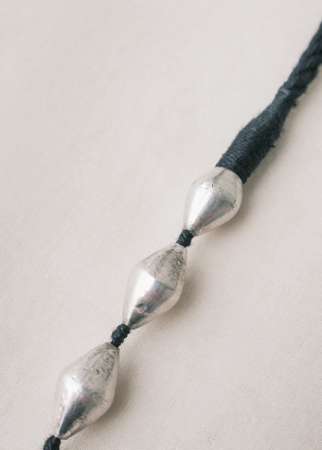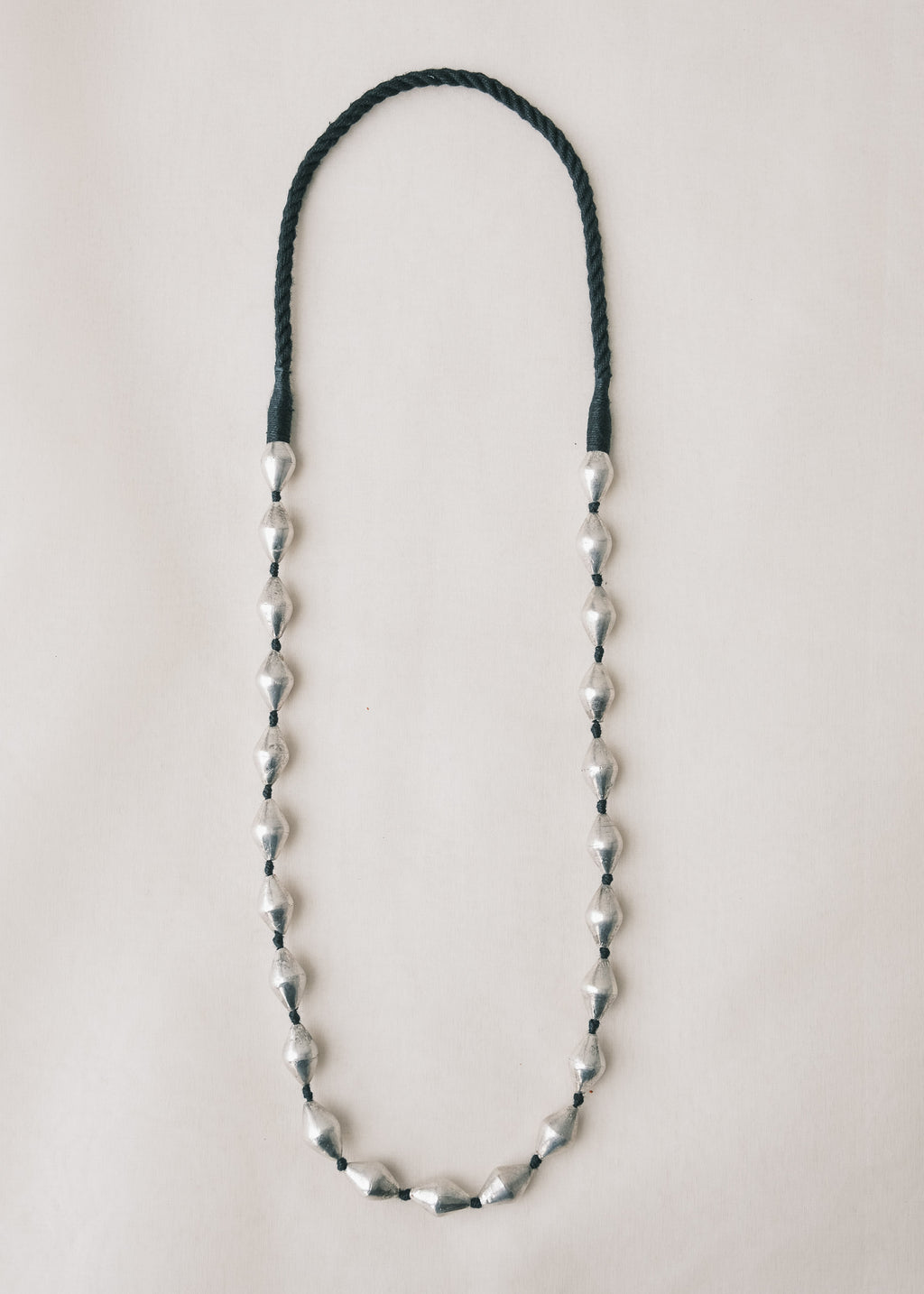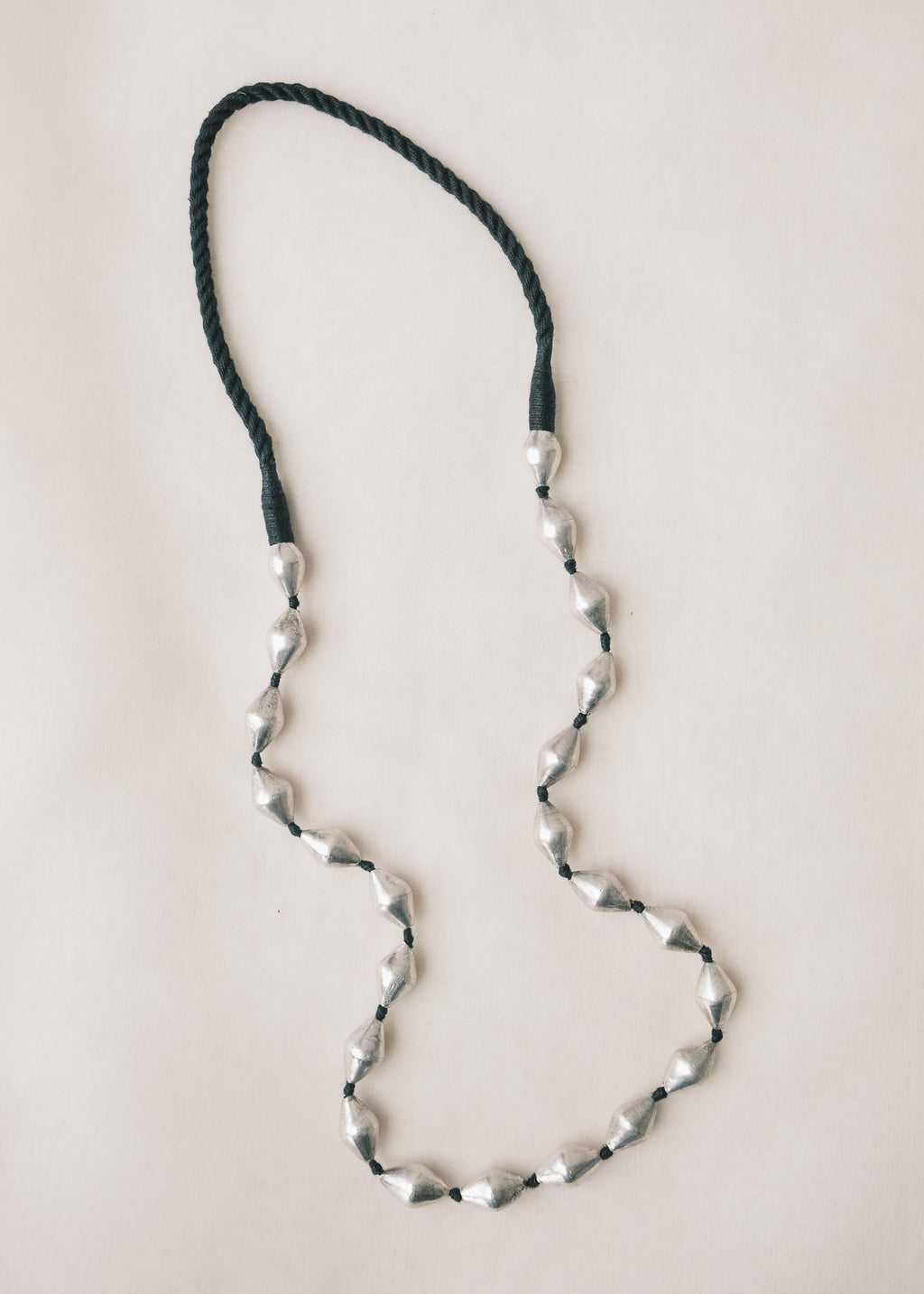 An exquisite 92.5 silver plated bead and cotton rope necklace.