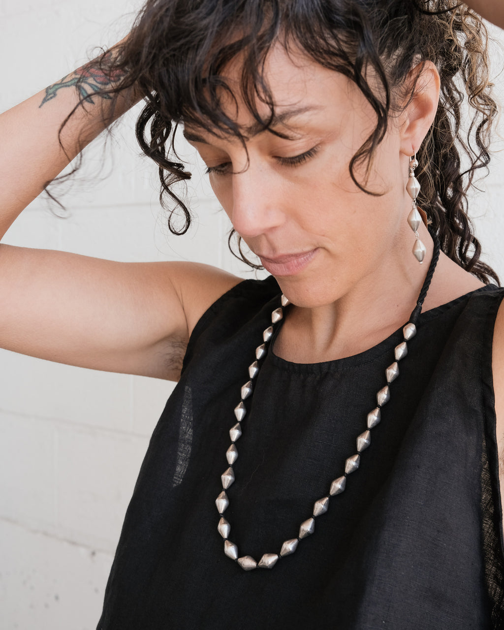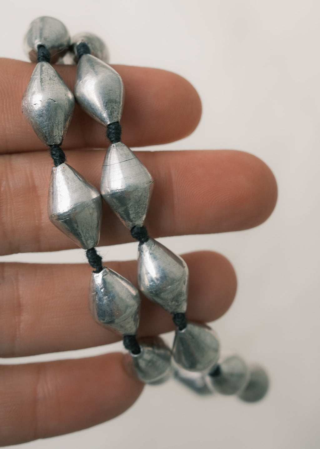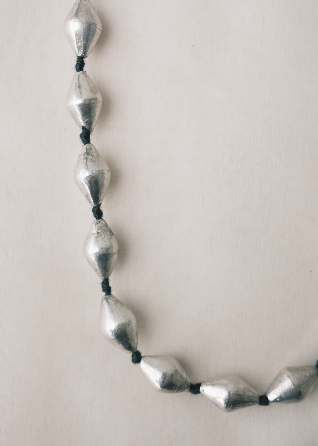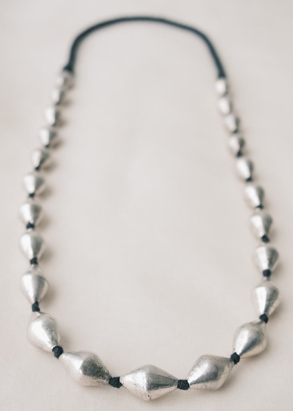 An exquisite 92.5 silver plated bead and cotton rope necklace.