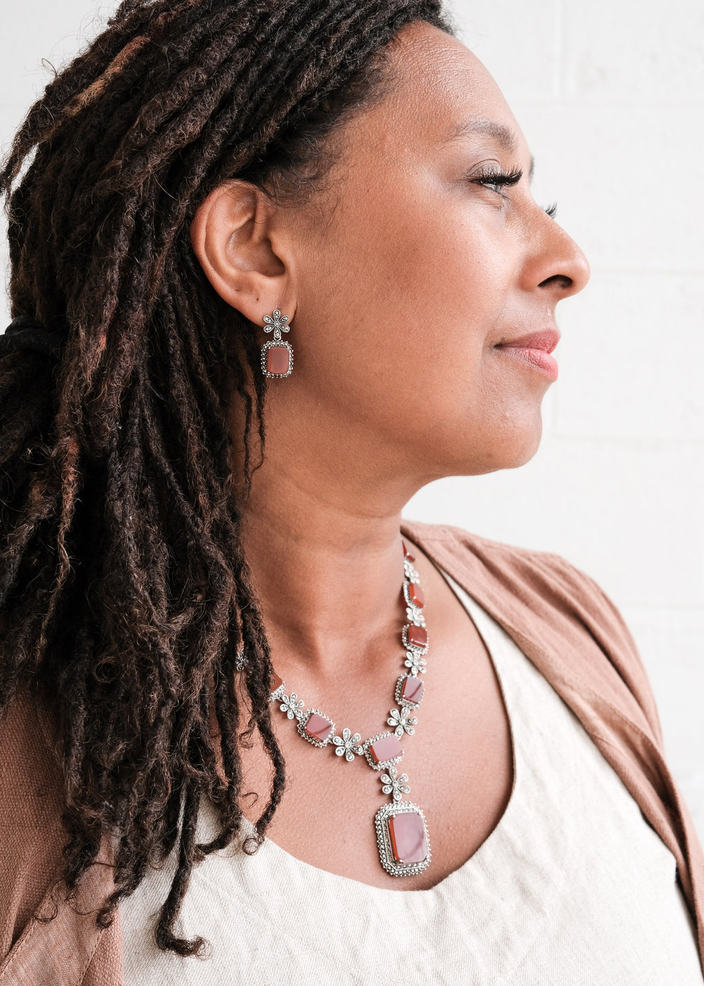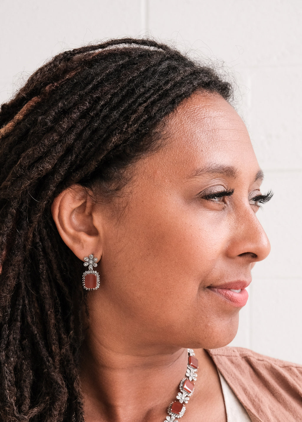 Jewellery - Necklace & Earring Set - Silver & Red Onyx