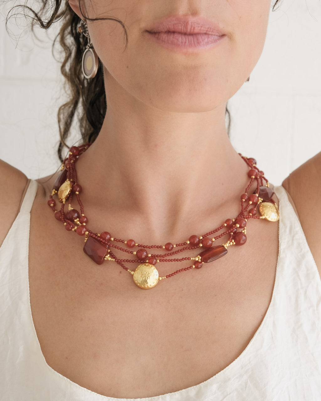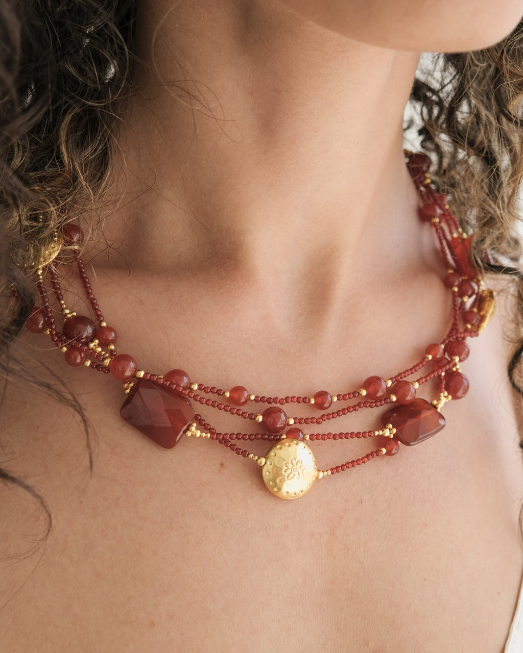 An exquisite 92.5 gold plated silver necklace with red onyx beads.