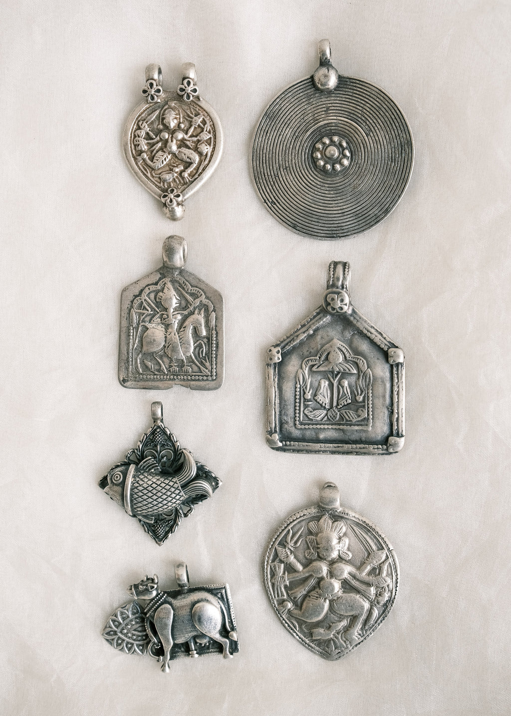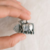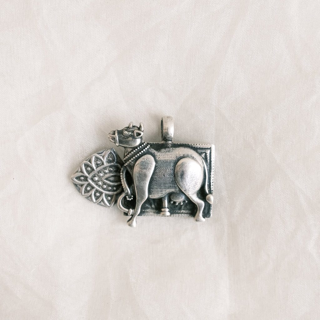 A handcrafted vintage silver pendant that showcases a sacred cow, offering protective energy to its wearer.