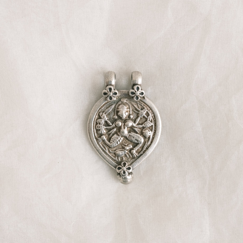 Jewellery - Pendant - Vintage Silver Durga Goddess with Flowers