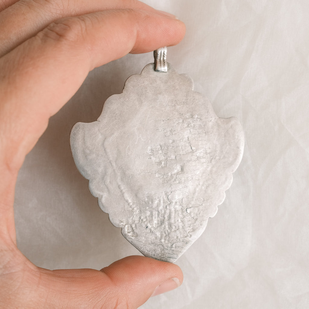 When a pendant has patina; part of the piece is polished and the crevices darkened, we know it has been held and rubbed countless times between the fingers of its owner, calling on blessings and prayers to be answered.