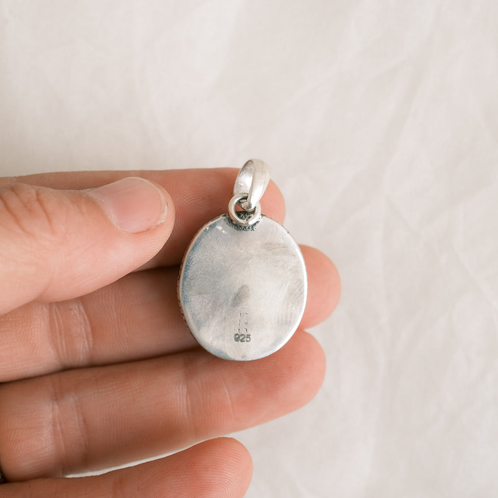 A handmade 92.5 silver amulet pendant featuring beautiful turquoise. A charming vintage piece with a captivating colour.