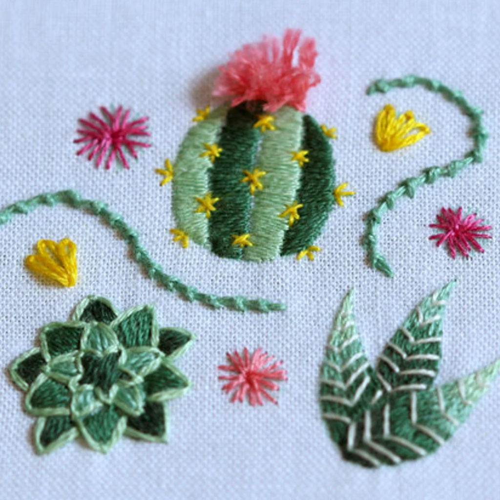 The Succulent Embroidery Stitch Sampler is a great introduction to stitches used in Kiriki Press and other embroidery patterns.