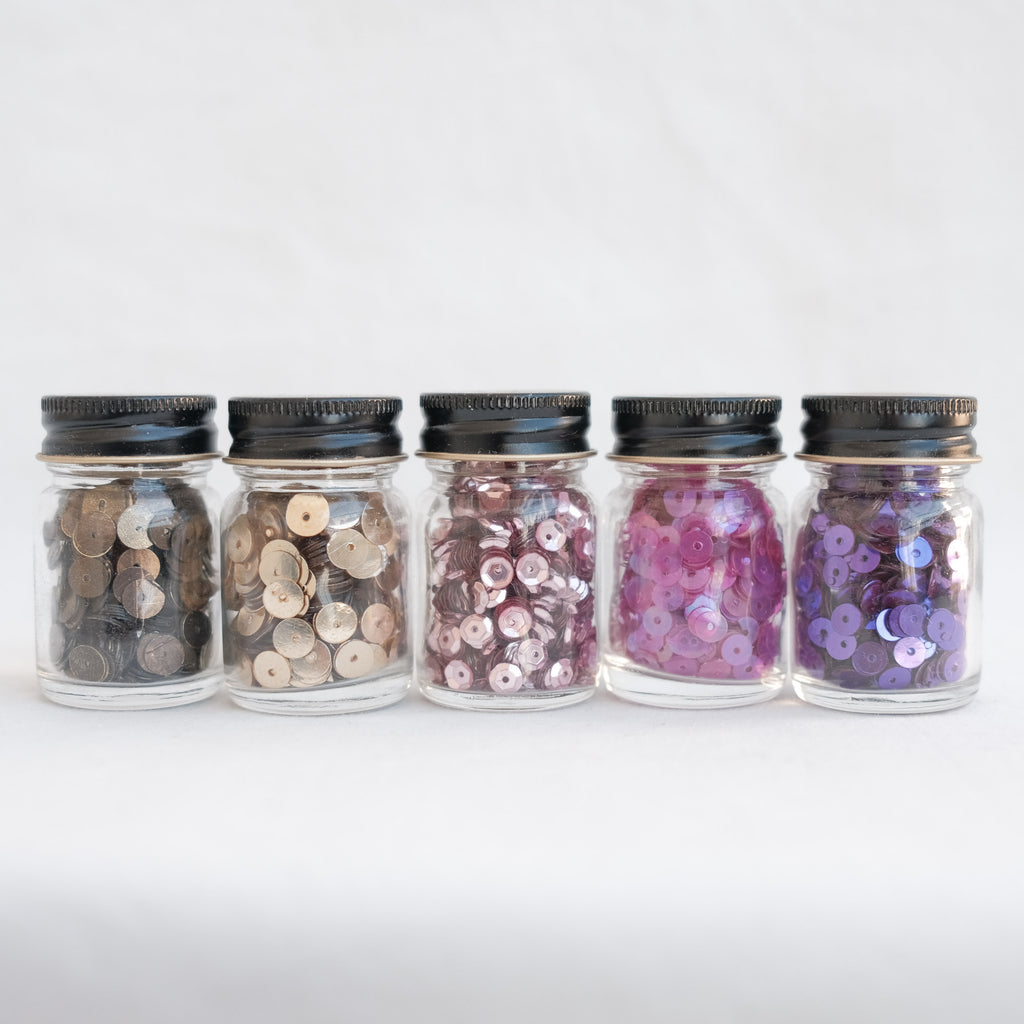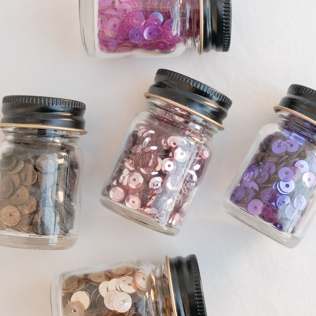This collection includes five glass jars filled to the brim with sequins in all your favourite metallic shades.