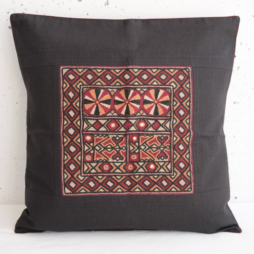 Kachchh Embroidery - 24" Cushion Cover - Jat - Burgundy Crème