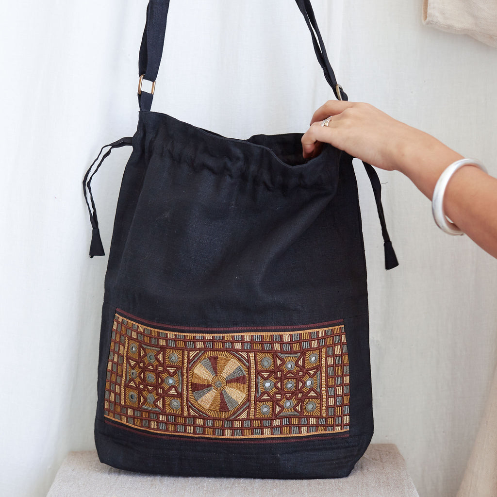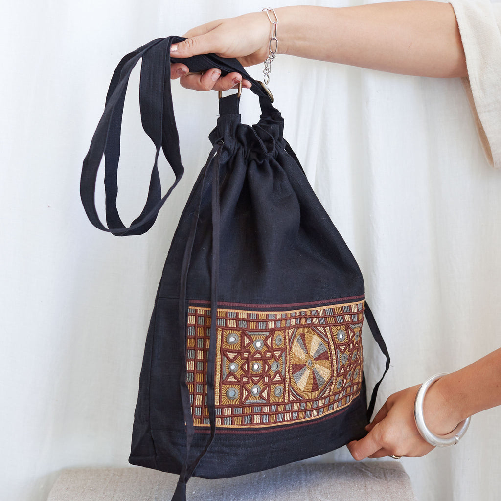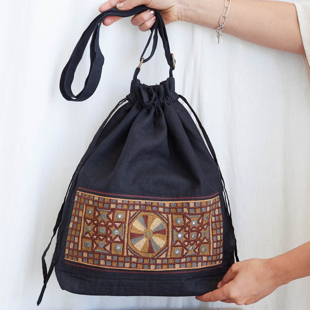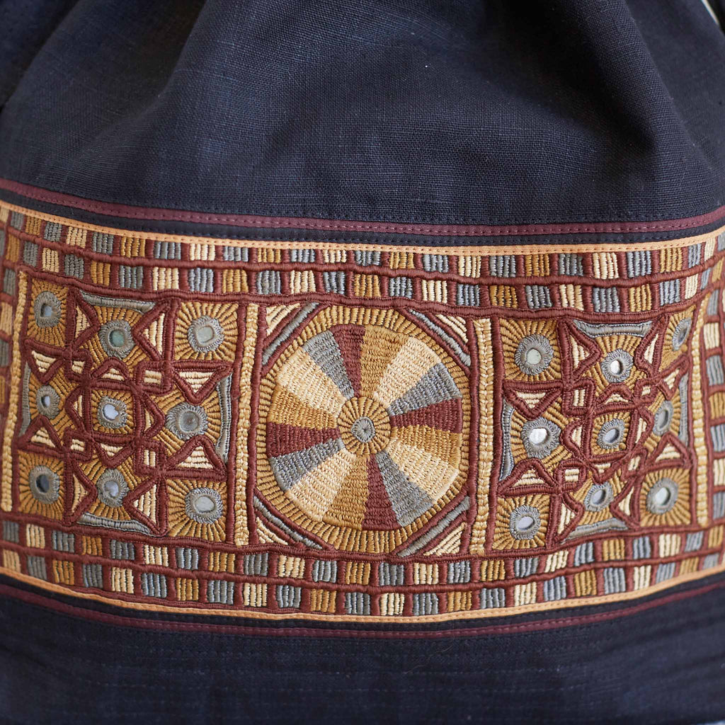 Kachchh Embroidery - Drawstring Bag - Dhanetah Jat - Earth Sky