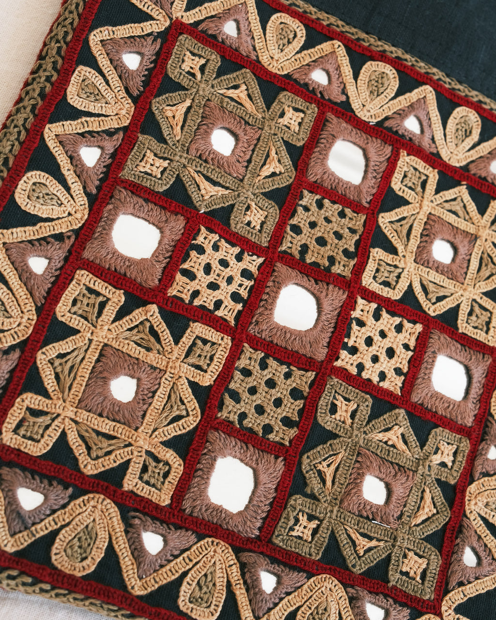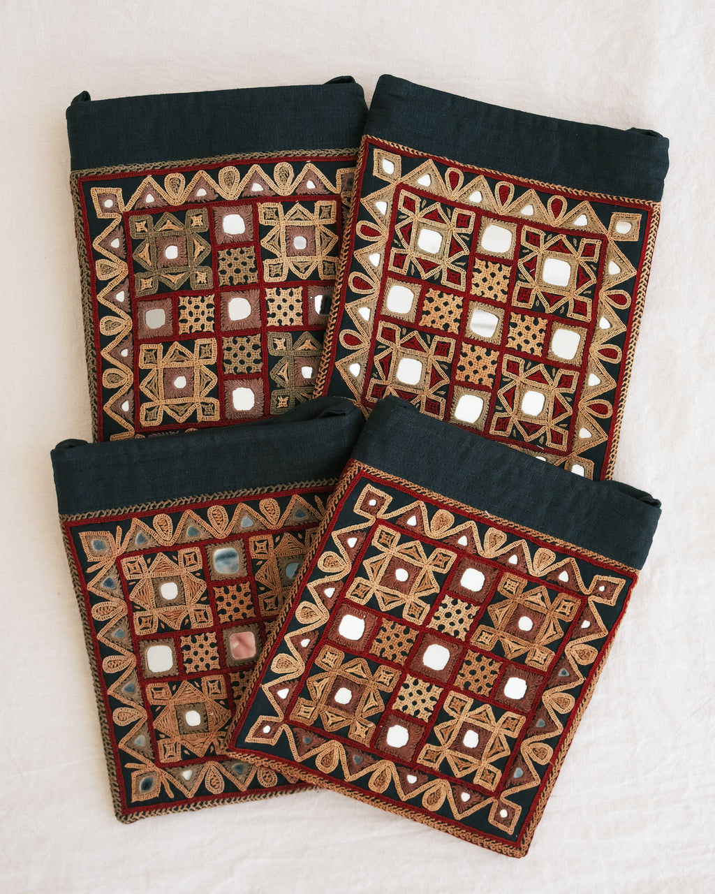 These embroideries bring the richness of desert cultures into your hands — heirlooms for the future. Each embroidery is a unique expression of the woman who made it. No two are the same.