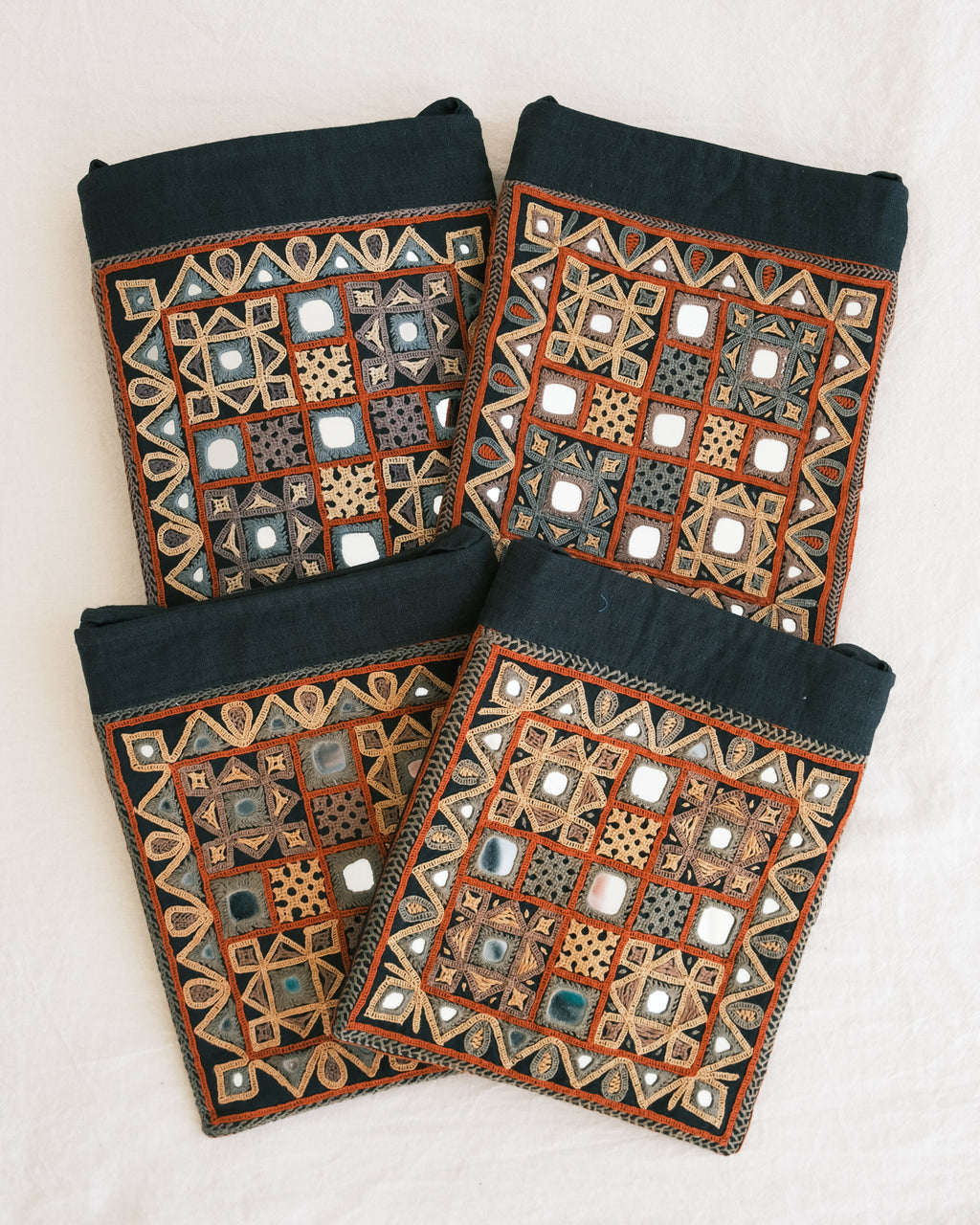 These embroideries bring the richness of desert cultures into your hands — heirlooms for the future. Each embroidery is a unique expression of the woman who made it. No two are the same.